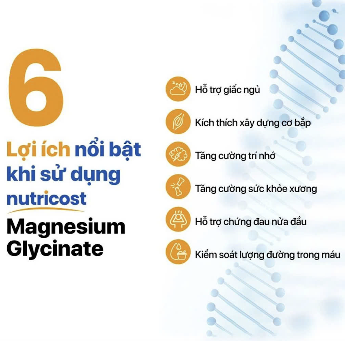 - Magie là khoáng chất phong phú thứ 4 trong cơ thể con người, tham gia vào hơn 300 phản ứng sinh hóa của cơ thể. 60% magie nằm ở xương, 40% còn lại là trong cơ bắp, mô mềm, chất lỏng và máu. Bổ sung Magie giúp cho: ✓ Cải thiện chất lượng giấc ngủ ✓ Giảm lo âu, căng thẳng, mệt mỏi ✓ Giảm đau nửa đầu ✓ Hỗ trợ quá trình khoáng hóa xương, giúp xương khớp chắc khỏe ✓ Hỗ trợ kiểm soát lượng đường trong máu ✓ Giảm tình trạng chuột rút, co thắt cơ ✓ Cải thiện sự co duỗi cơ khi vận động