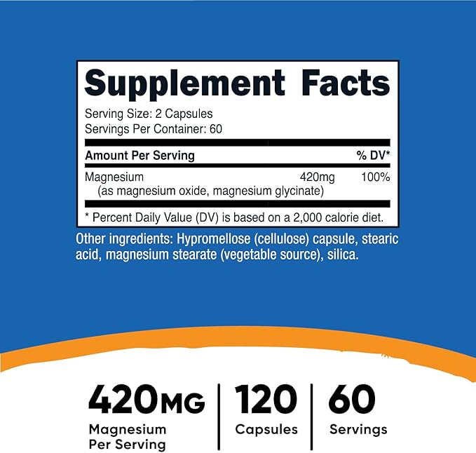 - Viên uống Magnesium của hãng Nutricost giúp cung cấp cho bạn 420mg Magie. Bên trong bao gồm Magie Oxide và Magie Glycinate (còn gọi là Magie Bisglycinate). Dòng Magie Bisglycinate có khả năng hấp thụ nhanh hơn nhiều lần các loại magie thông thường khác, không gây buồn nôn, tiêu chảy hay khó chịu dạ dày.