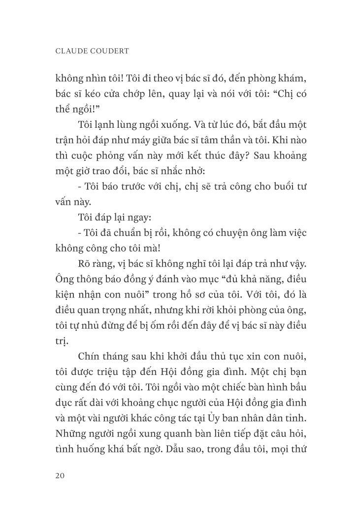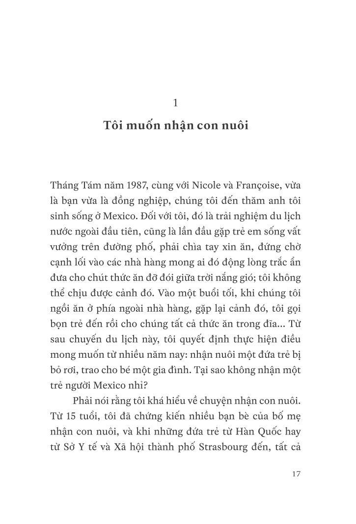 Ngày 23 tháng Mười một năm 1992, lần đầu tiên tôi đặt chân đến Việt Nam, tại thành phố Hồ Chí Minh, trước đây được biết đến với cái tên Sài Gòn. Tôi vừa mới nhận nuôi một đứa trẻ, tôi không biết gì về bé và hơn hết tôi không biết rằng tôi cũng sẽ được “nhận nuôi” ngay tại đất nước nà