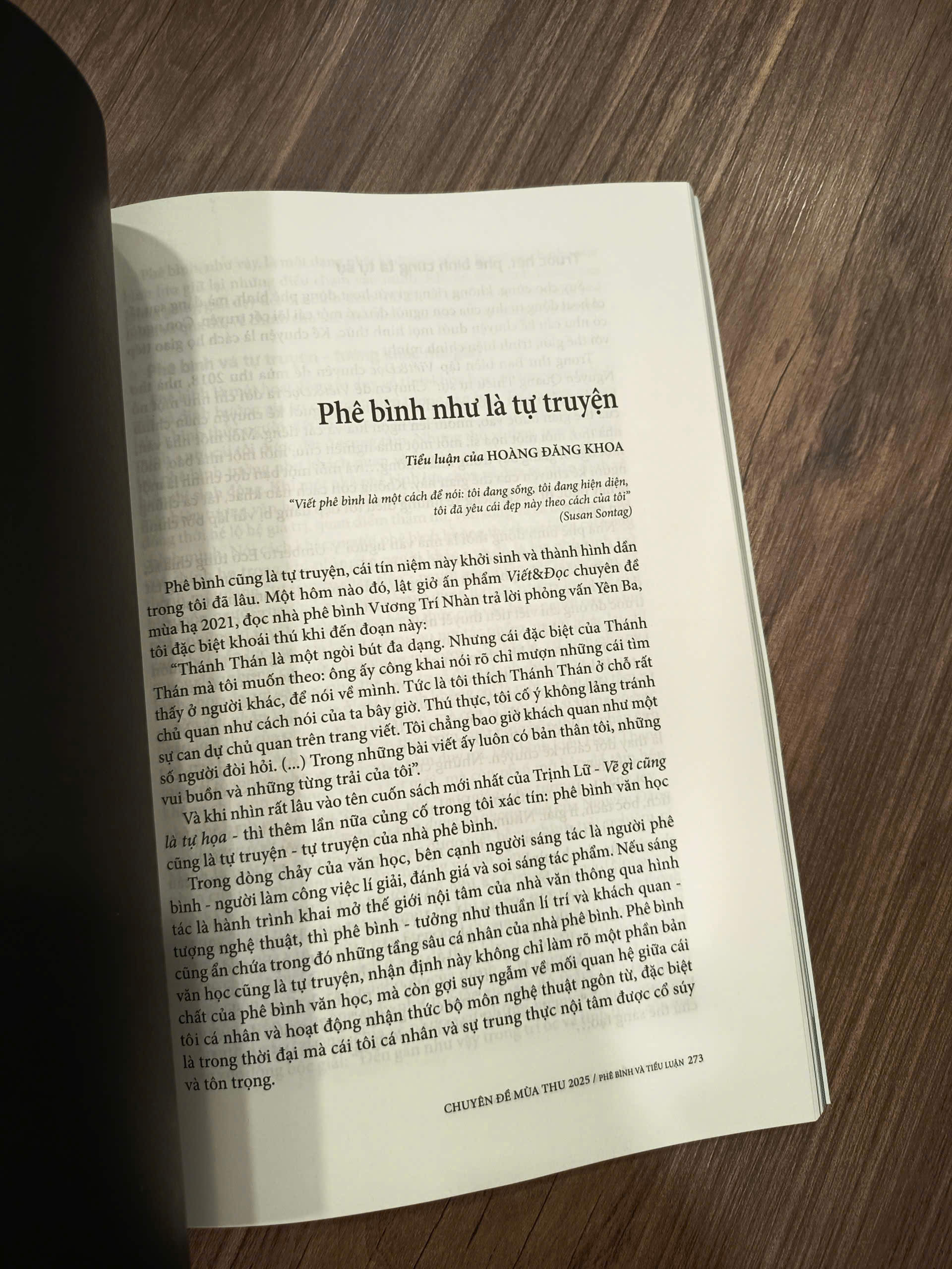 Nếu bạn mong tìm một mạch lý luận rõ rệt xuyên suốt, có thể sẽ thấy thiếu. Nhưng nếu bạn đến với sách như tìm một đồng hành nhỏ — một gợi ý, một kỹ thuật, một câu hỏi — Viết và Đọc — Chuyên đề Mùa Thu 2025 sẽ là người bạn nhẹ nhàng và kiên nhẫn. Hãy mở sách khi chiều bắt đầu rơi, để từng con chữ nhẹ thì thầm trong lòng bạn.
