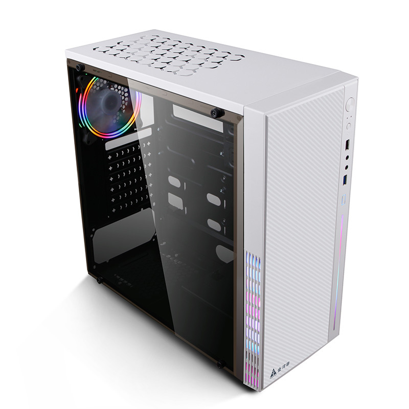 Case BERYL 2- G9602W - Màu trắng Mặt nhựa ABS có khe lưới giúp lấy gió tốt hơn Kèm sẵn 1 dãy led RGB đồng bộ với 2 Fan RGB ở mặt trước MẶT HÔNG
