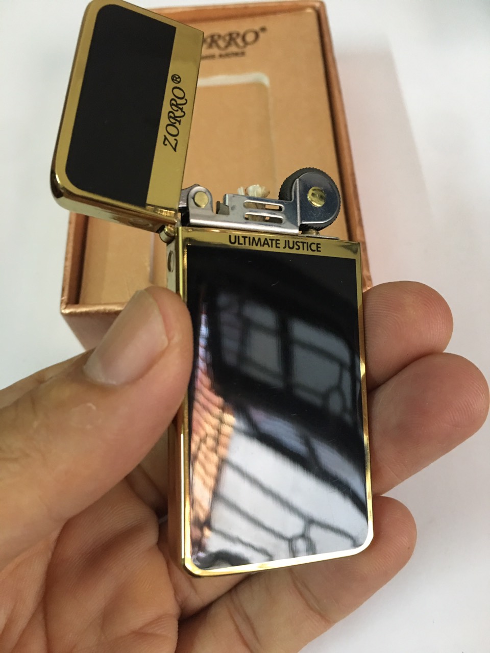 BẬT LỬA ZORRO ZC5 SƠN MÀI BÓNG VIỀN VÀNG CAO CẤP MÔ TẢ SẢN PHẨM : -Chất liệu: hợp kim nguyên khối -Màu sắc : bên trong sơn mài đen bóng + viền vàng -Dùng