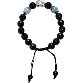 ✨Vòng Đá Obsidian Phối Hải Lam Ngọc Và Charm Phật Bạc Ngọc Quý Gemstones VT56