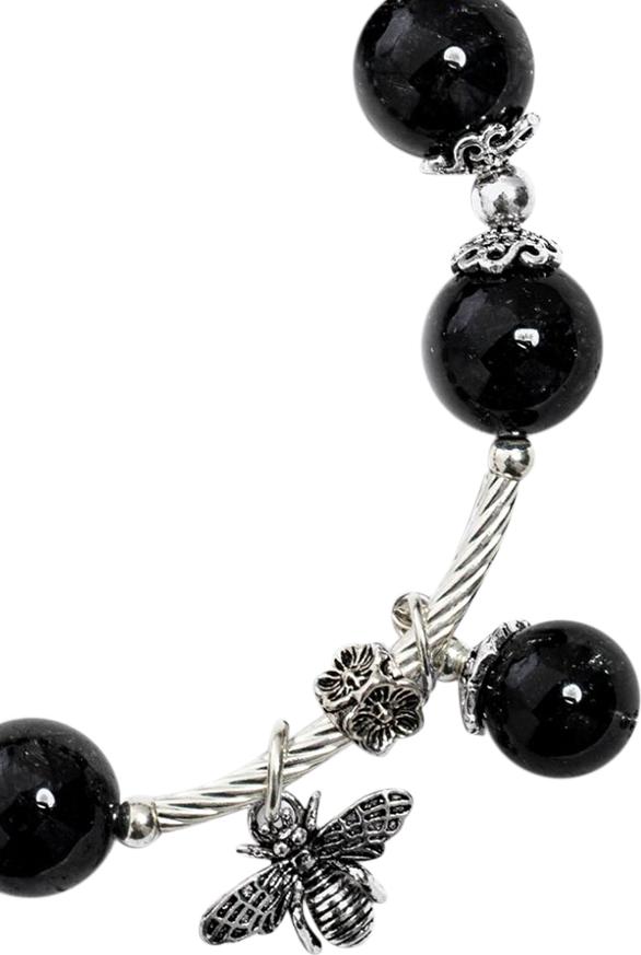Vòng Tay Thạch Anh Tóc Đen Charm Ong Ngọc Quý Gemstones VT111 là loại đá xuất phát từ châu Mỹ, chứa nhiều chất black tourmaline nên có màu đen.