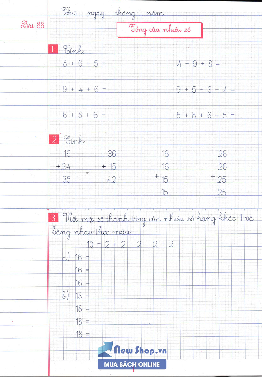 VỞ Ô LI BÀI TẬP TOÁN LỚP 2 Quyển 2 Bài 88 - TỔNG CỦA NHIỀU SỐ - Thầy Nhựt TV