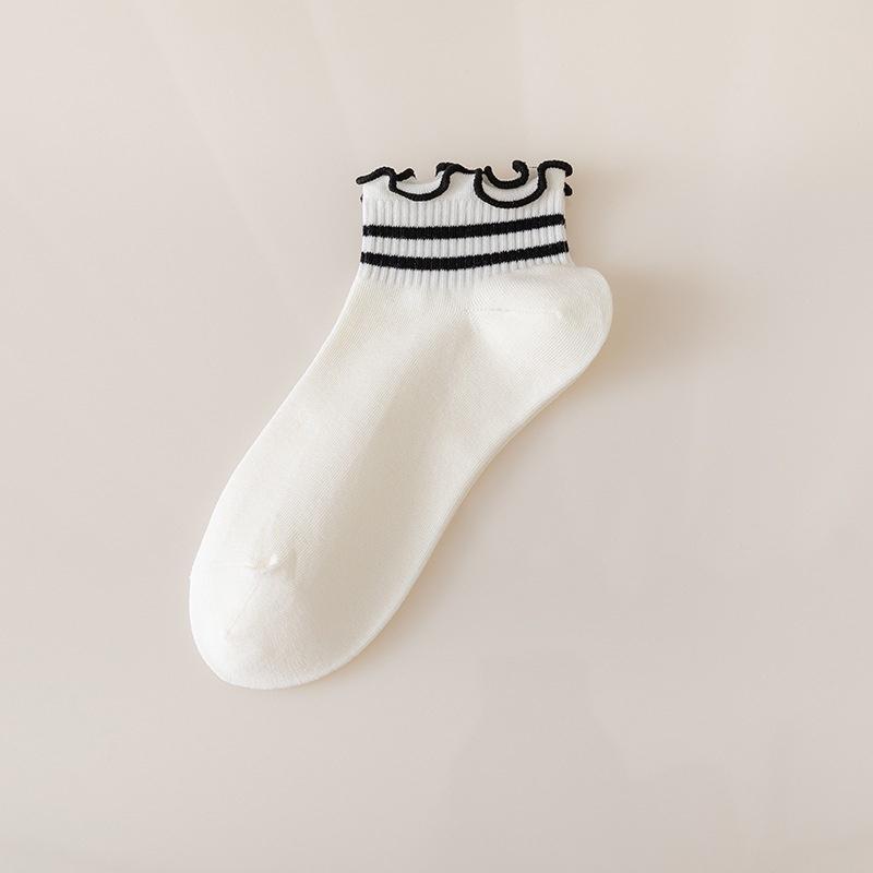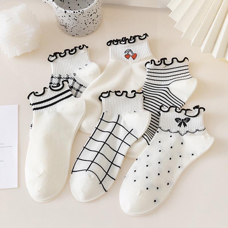 ✨Vớ Thuyền Mỏng Viền Ren Màu Trắng Đen Phong Cách Nhật Bản Ngọt Ngào Thời Trang Xuân Thu Cho Nữ