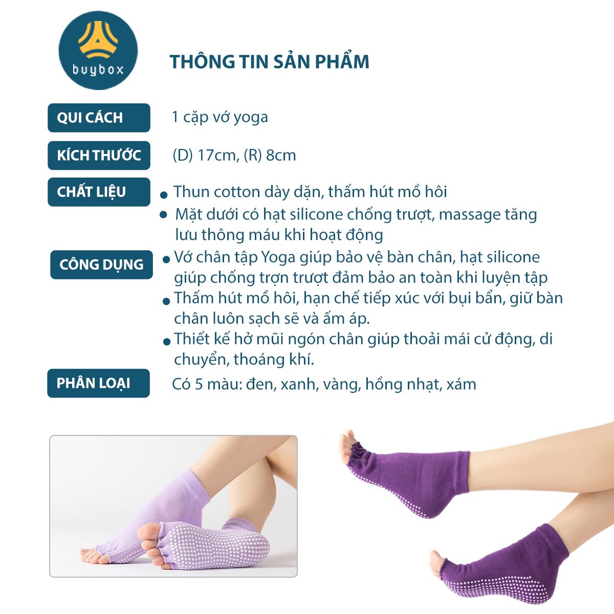MÔ TẢ SẢN PHẨM Tất nữ tập Yoga Gym chống trơn trượt, vớ chân nữ cổ lửng chất liệu cotton thoáng khí có gắn silicon ở bàn chân GIỚI THIỆU SẢN PHẨM: -