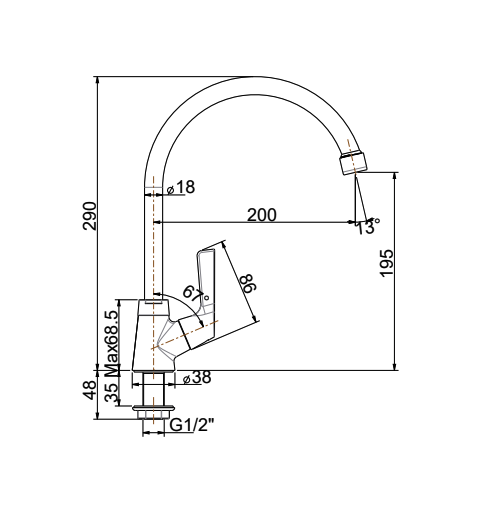 Vòi bếp lạnh cổ cao American Standard -Wiston WF-T606(FFAST606) THÔNG SỐ KỸ THUẬT - Loại sản phẩm : Vòi rửa chén(bát) lạnh cao cổ gắn chậu (vòi chưa bao gồm dây cấp nước) - Áp