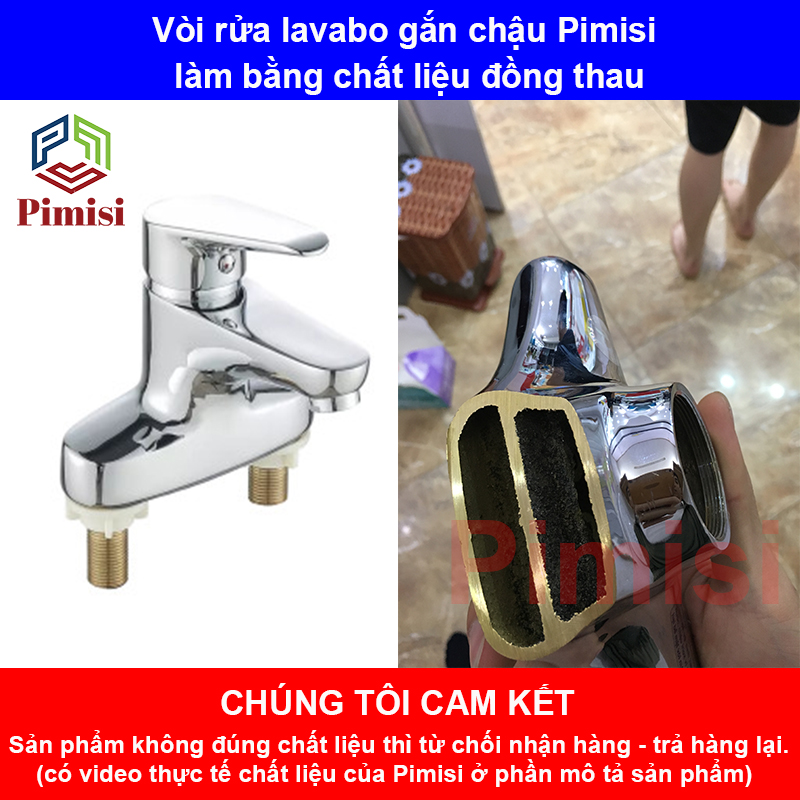 ✨Vòi Chậu Lavabo Nóng Lạnh Pimisi PV-203C Cho Chậu Rửa Mặt 3 Lỗ (2 Chân) Bằng Đồng Thau, Dùng Cho Nhà Tắm | Chính Hãng
