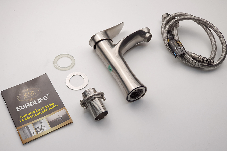 Vòi Lavabo nóng lạnh Inox SUS 304 Chrome Eurolife EL-1502 * Hãng sản xuất : Eurolife Việt Nam * Chất liệu : Sản phẩm được đúc trọng lực bằng Inox SUS 304 tinh khiết không