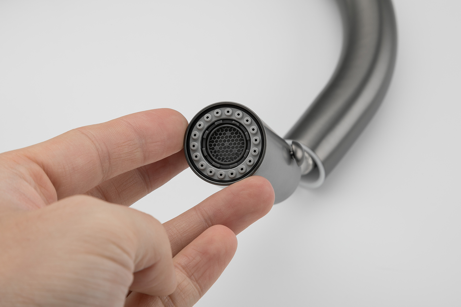 Mã sản phẩm: Artan Grey – Hình dáng: Vòi thiết kế bo tròn, đầu vòi ngang. Tay vòi ngang – Chức năng: Nóng lạnh + Rút dây + 2 chức năng Sprayer (Phun hoa sen,