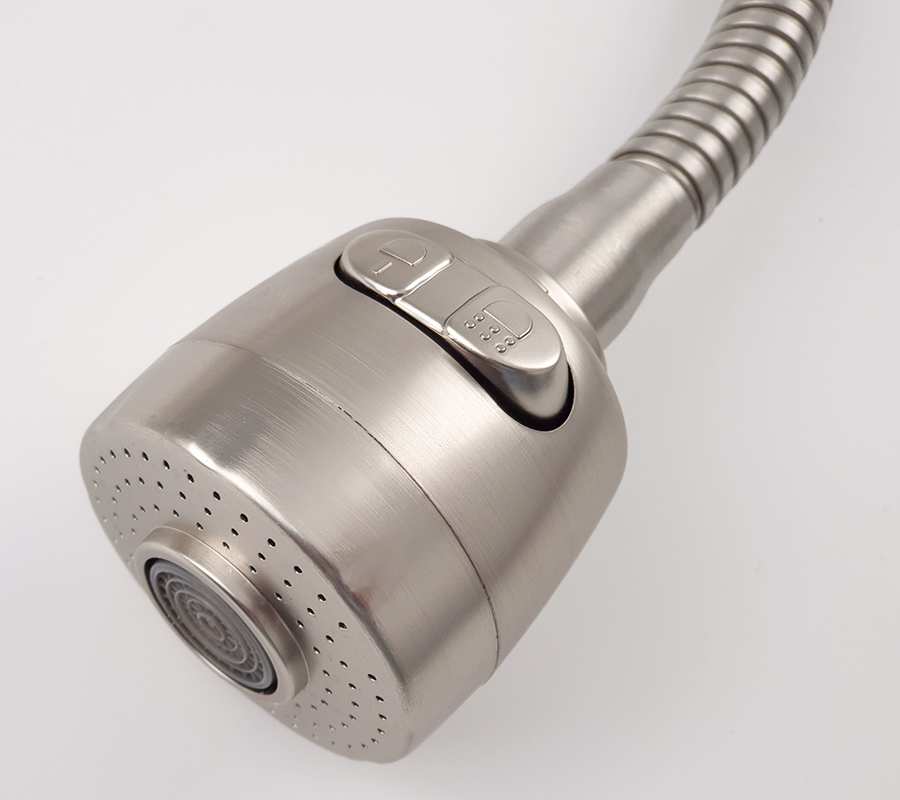 Vòi rửa bát nóng lạnh đầu dây rút, gồm có 2 lựa chọn như sau: Mẫu 1. Mã vòi dây rút R02H, chất liệu inox mờ bền bỉ (màu inox) Mẫu 2. Mã vòi dây