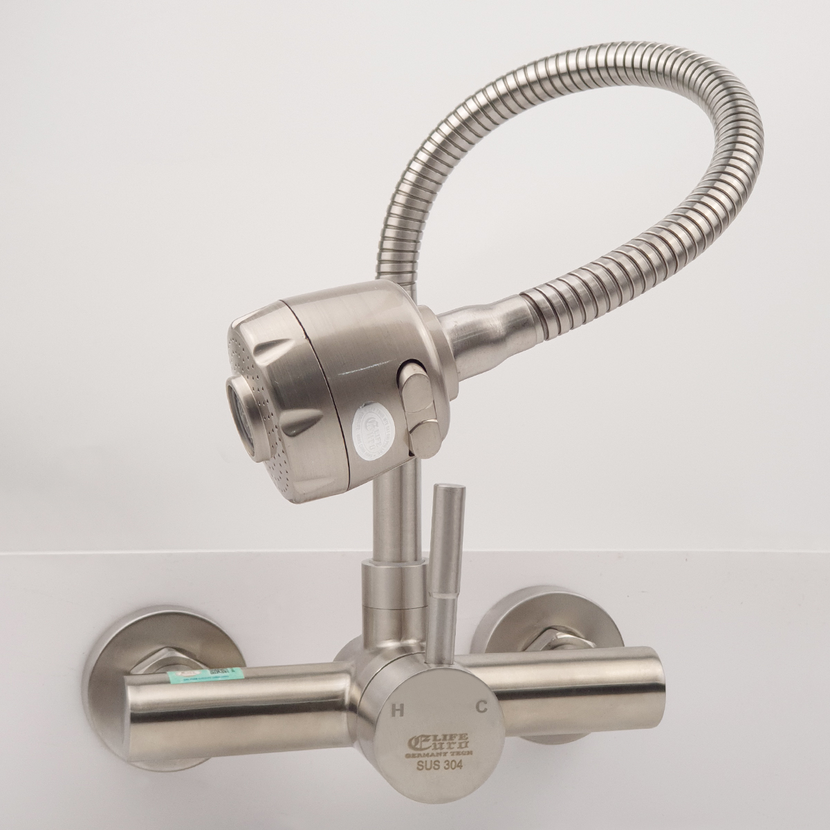 Chất liệu: Inox 304 Thiết kế 2 đường nước nóng – lạnh Thân vòi có thể xoay 360 độ Đầu vòi tạo bọt, hạn chế bắn nước khi sử dụng Bảo hành 5 năm chính