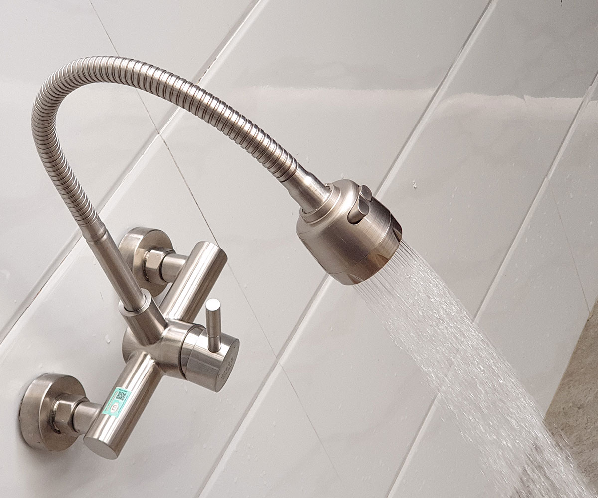 Ốc kết nối và ốc gông bằng Inox SUS 304 chắc chắn và bền bỉ, giúp vòi không bị gãy vỡ chân khi lắp đặt.