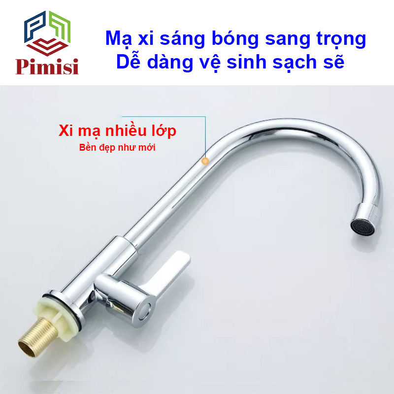 ✨Vòi Rửa Chén Lạnh 1 Đường Nước INOX 304 Pimisi Cao Cấp Mạ Xi Cr/Ni Sáng Bóng Cổ Xoay Bi Cấp Nước Cho Chậu Rửa Bát 1-2-3 Hố Trong Nhà Bếp Gắn Chậu Âm - Dương Bàn Đá Quay 360 Tăng Áp Kiểu Đơn Cổ Ngỗng Cần Cứng - Thân - Để To | Hàng chính hãng