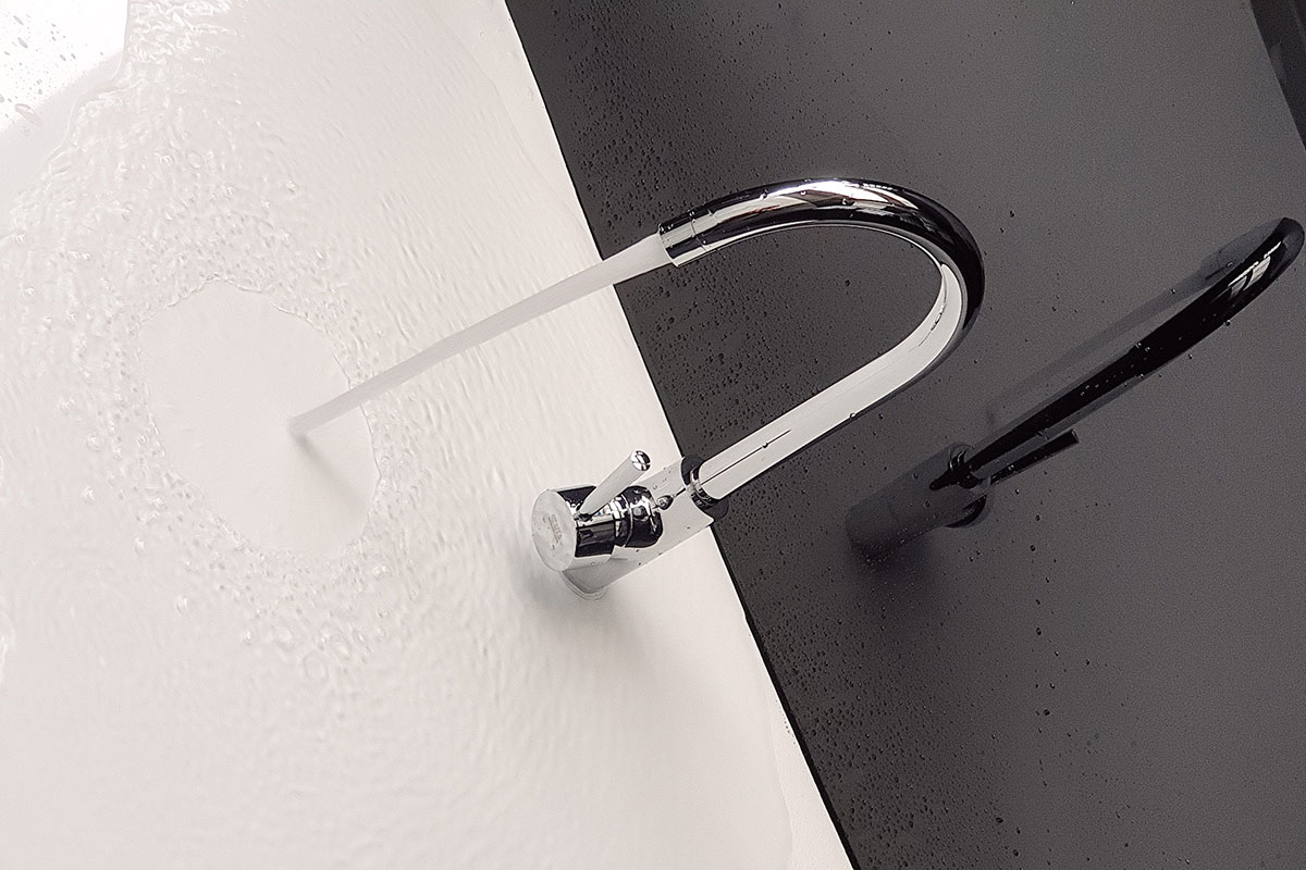 Mã sản phẩm: Ponte Chrome – Hình dáng: Vòi thiết kế bo tròn, đầu vòi cong. Một tay vòi nằm ngang – Chức năng: Nóng lạnh + Rút dây + Đầu vòi khớp xoay +