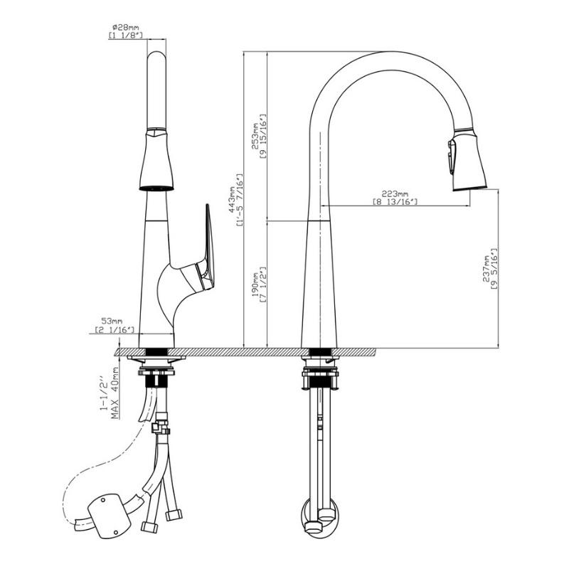 Mã sản phẩm: Ponte Chrome – Hình dáng: Vòi thiết kế bo tròn, đầu vòi cong. Một tay vòi nằm ngang – Chức năng: Nóng lạnh + Rút dây + Đầu vòi khớp xoay +