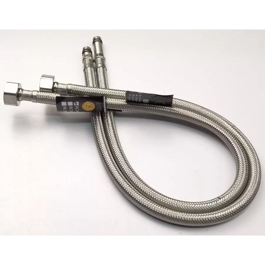 Dây cấp dài 50cm chịu nhiệt cao. Thân dây bằng Inox, 2 đầu ren được đúc bằng Inox SUS 304 bền bỉ. Hai dây hoàn toàn có thể chịu nhiệt độ cao lên đến 100 độ C