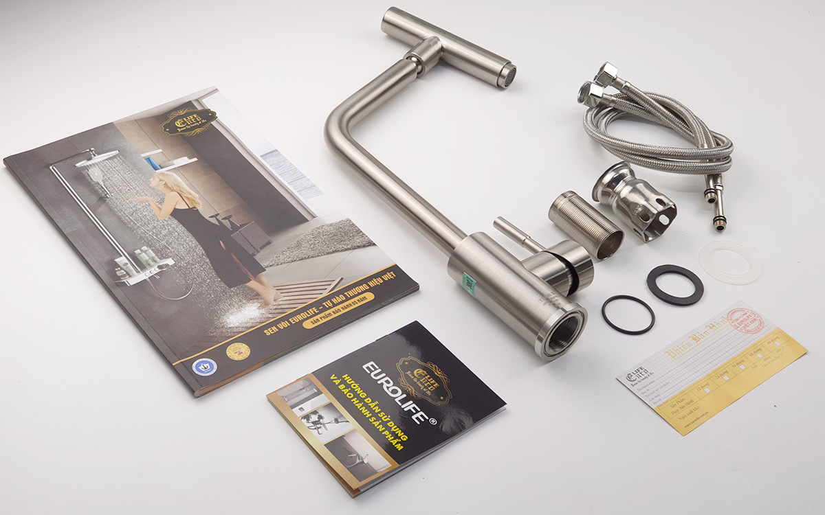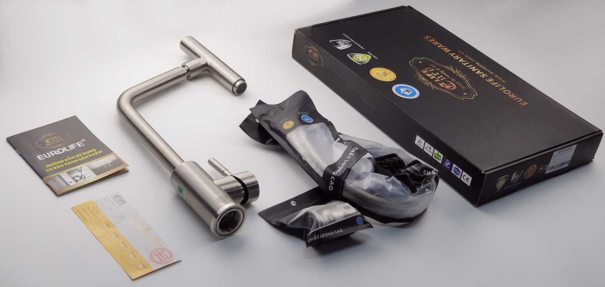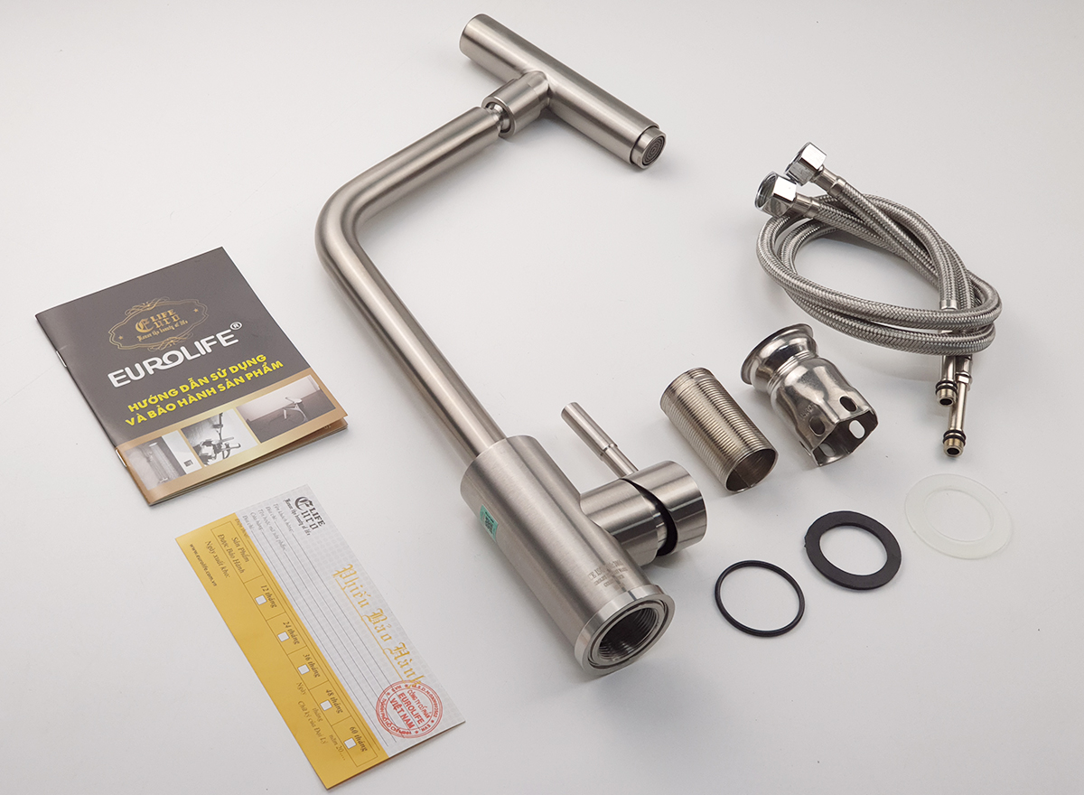 Vòi rửa chén nóng lạnh, dây kéo Inox SUS 304 Eurolife EL-T010 - Hãng sản xuất : Eurolife - Việt Nam - Trọng lượng : 1584 Grs - Chất liệu : Sản phẩm được đúc