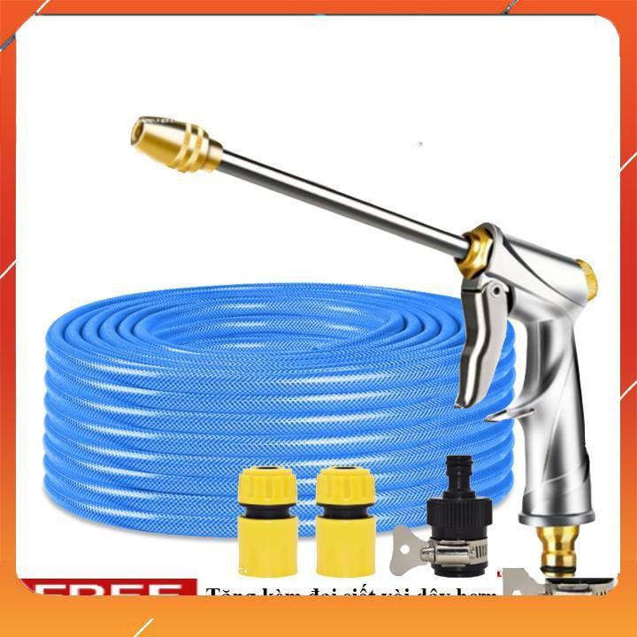 ✨Vòi Xịt️Evoucher Bộ dây vòi xịt nước rửa xe, tưới cây , tăng áp 3 lần, loại 20m 206701-2 đầu đồng,cút,nối đen + đai