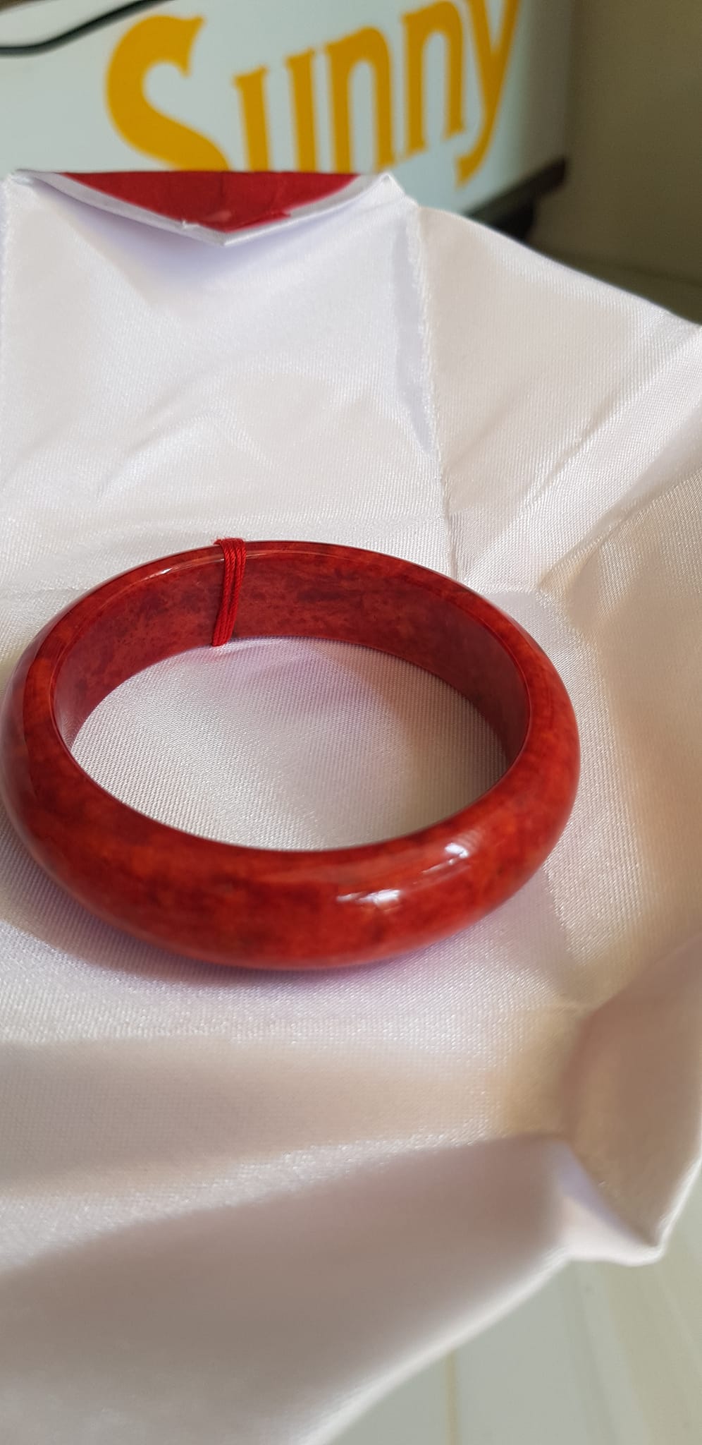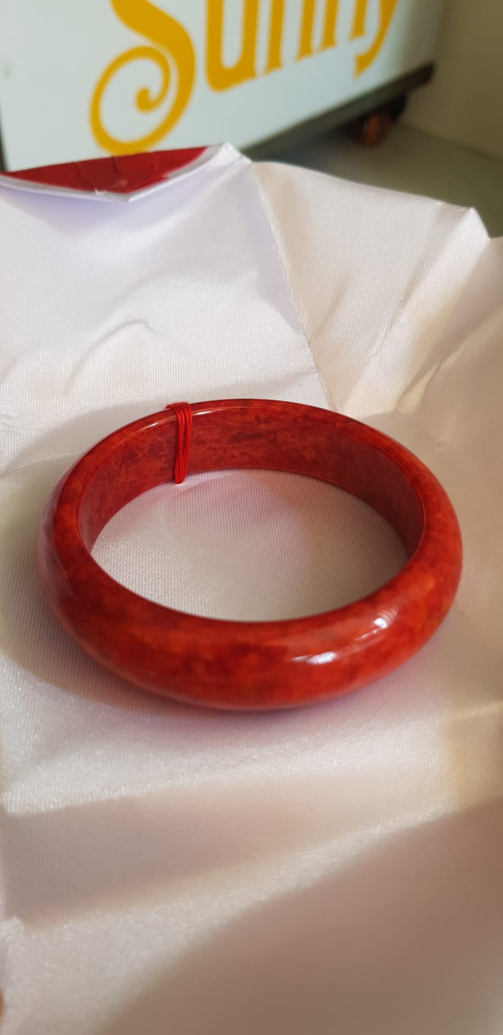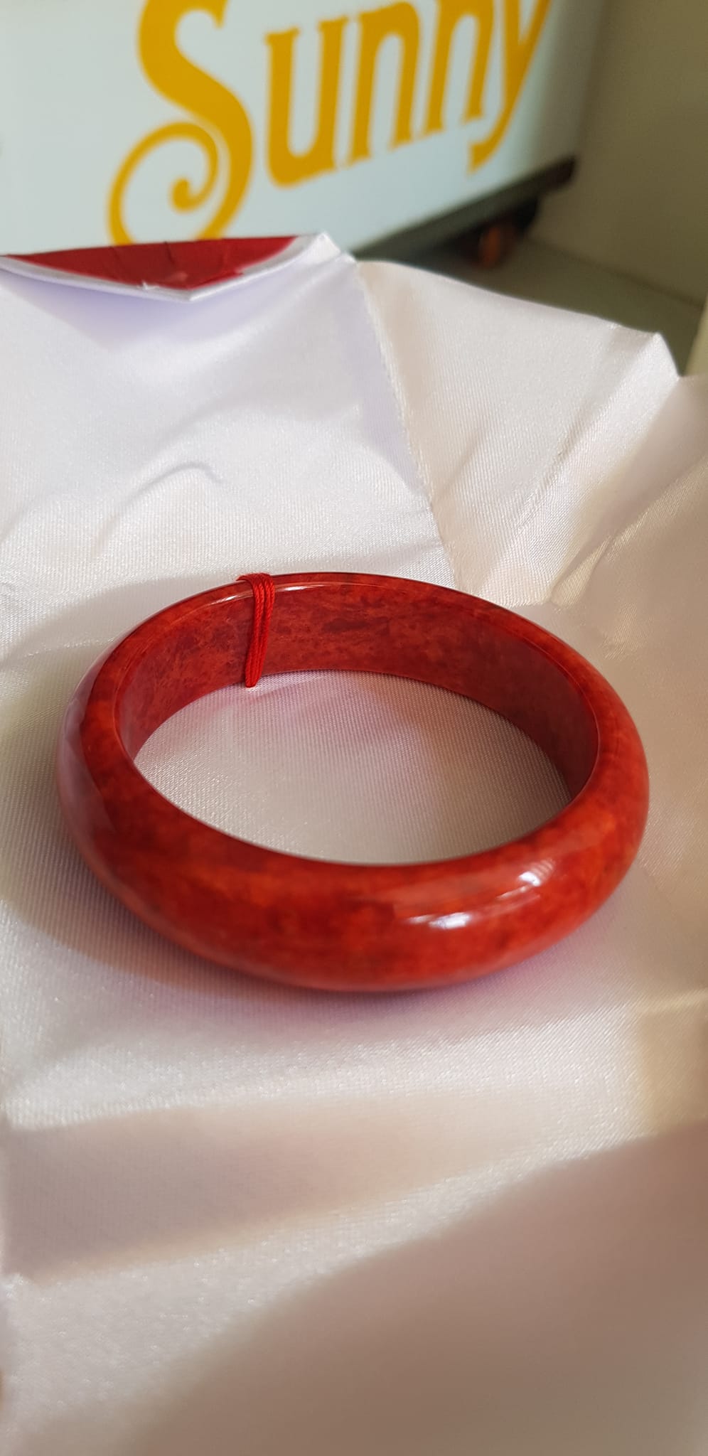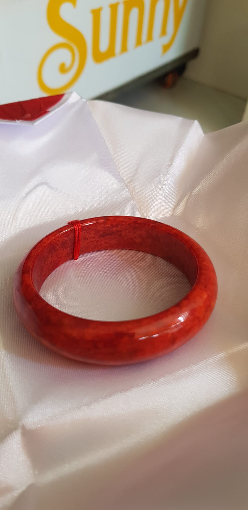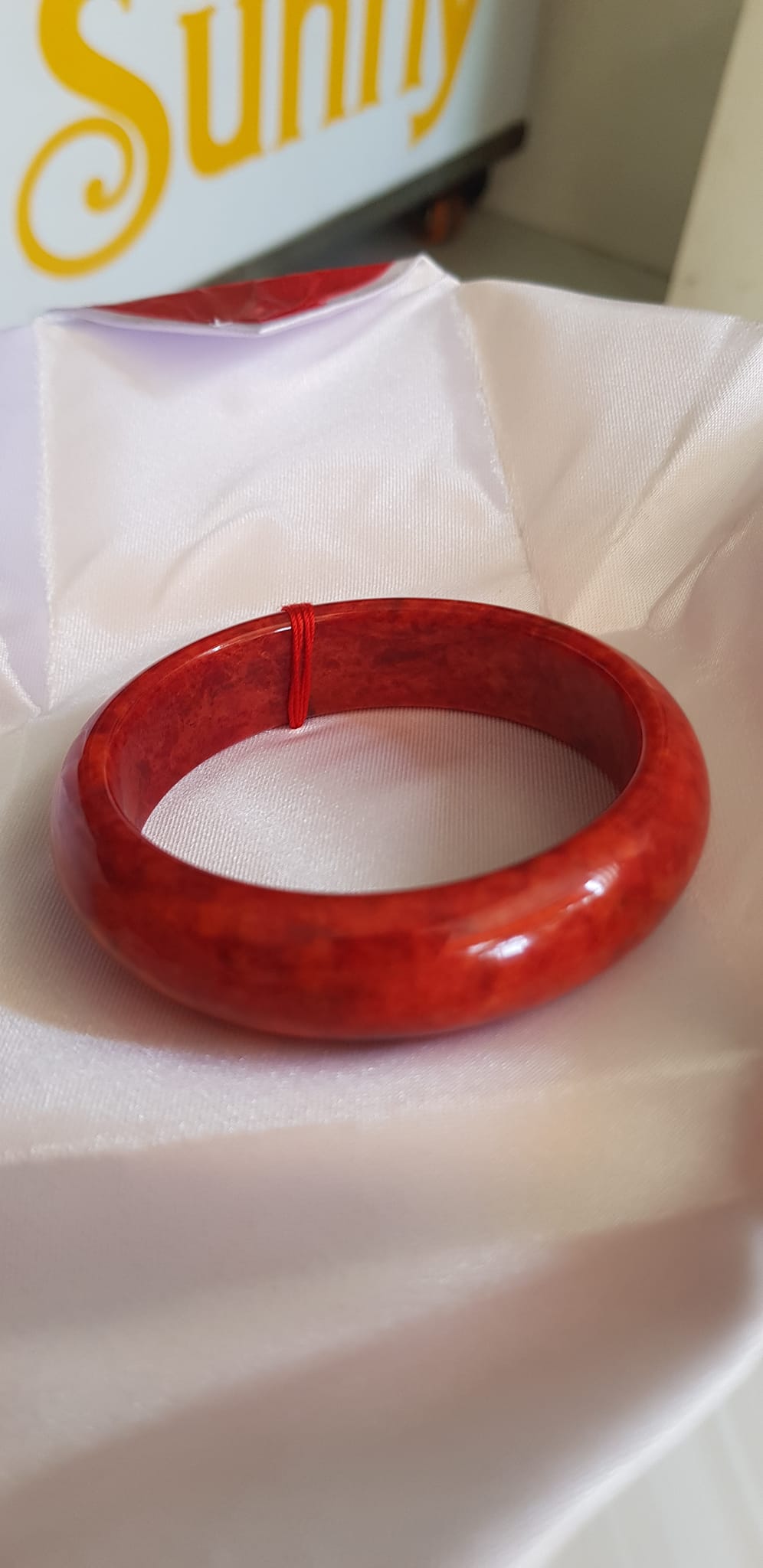 ✨Vòng Cẩm Thạch mới Bản Hẹ Đỏ 56mm x cao 15mm x dầy 7,5mm màu đỏ bông bông đều đậm đẹp nữ mệnh hỏa mệnh thổ 54kg - 65kg đeo hợp ạ