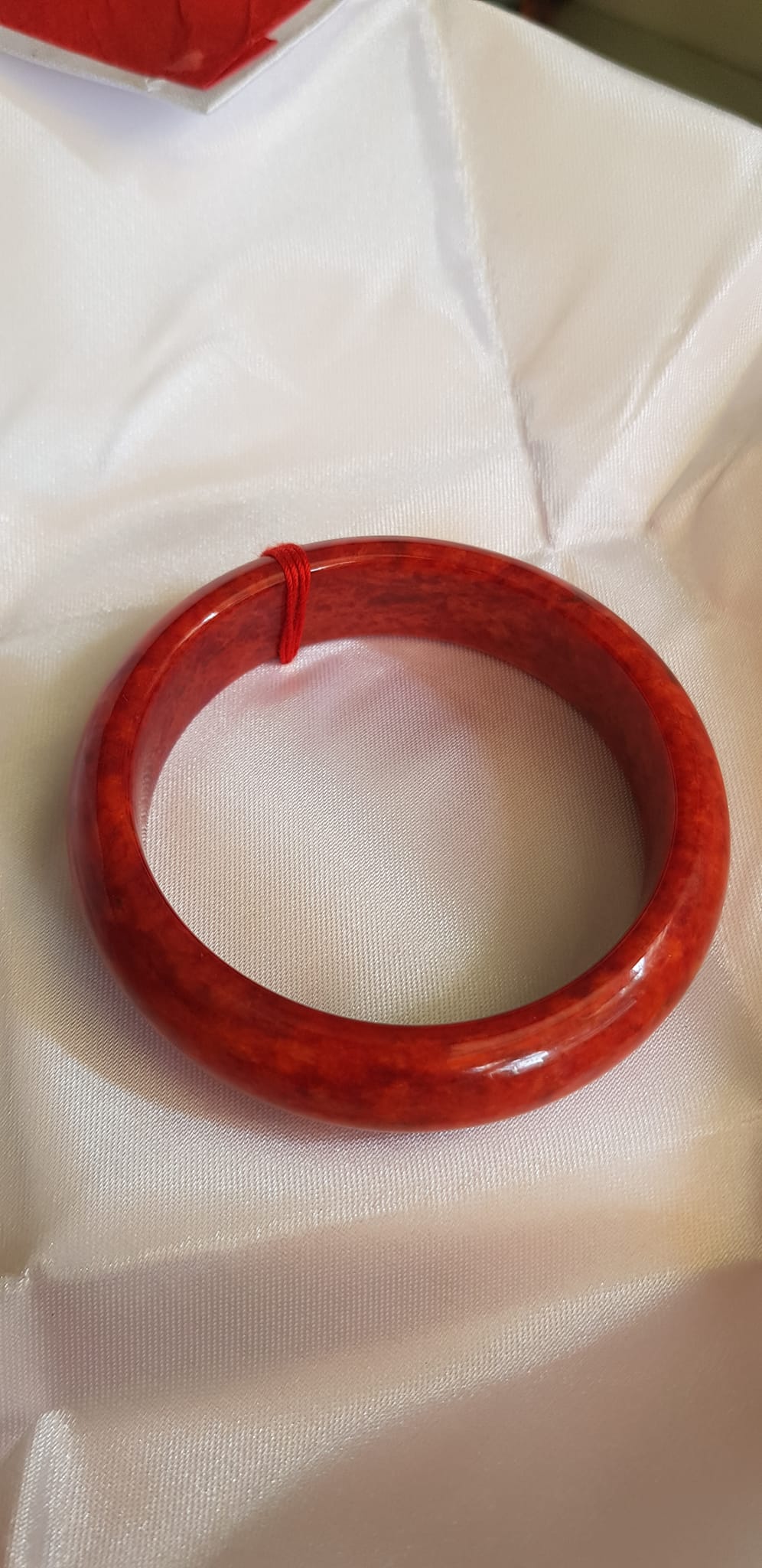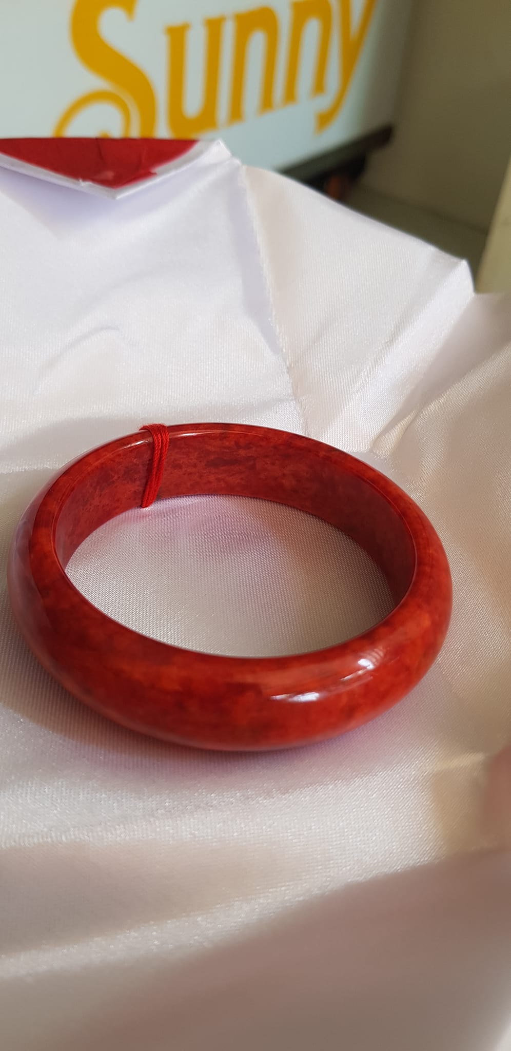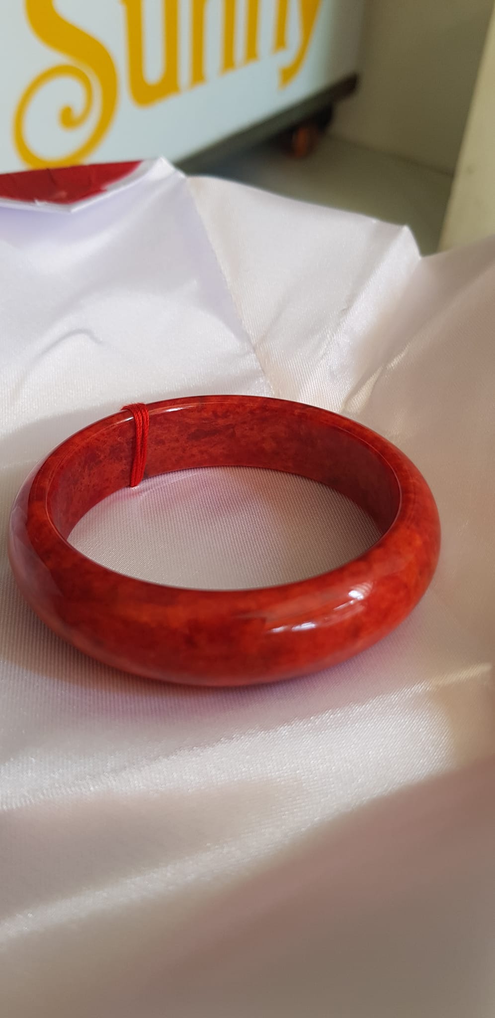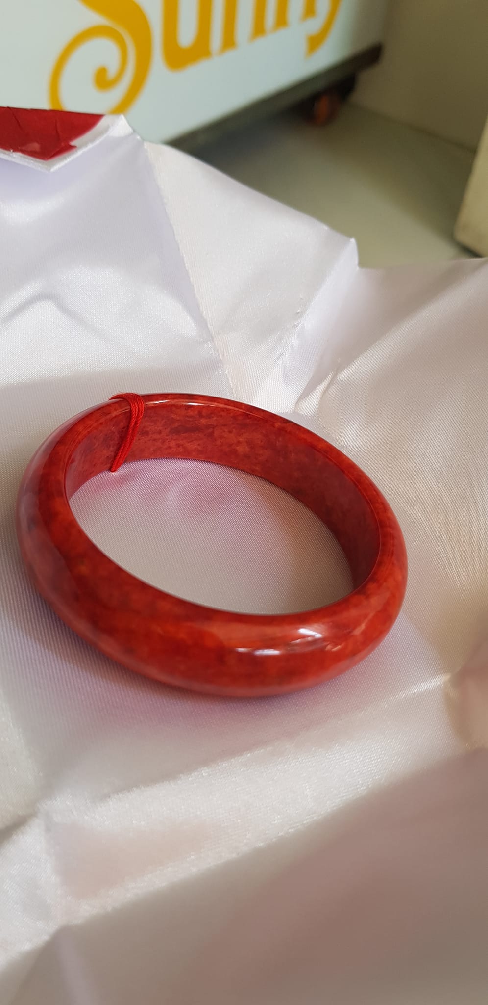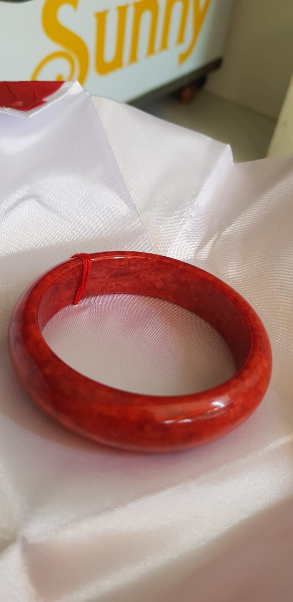 ✨Vòng Cẩm Thạch mới Bản Hẹ Đỏ 56mm x cao 15mm x dầy 7,5mm màu đỏ bông bông đều đậm đẹp nữ mệnh hỏa mệnh thổ 54kg - 65kg đeo hợp ạ