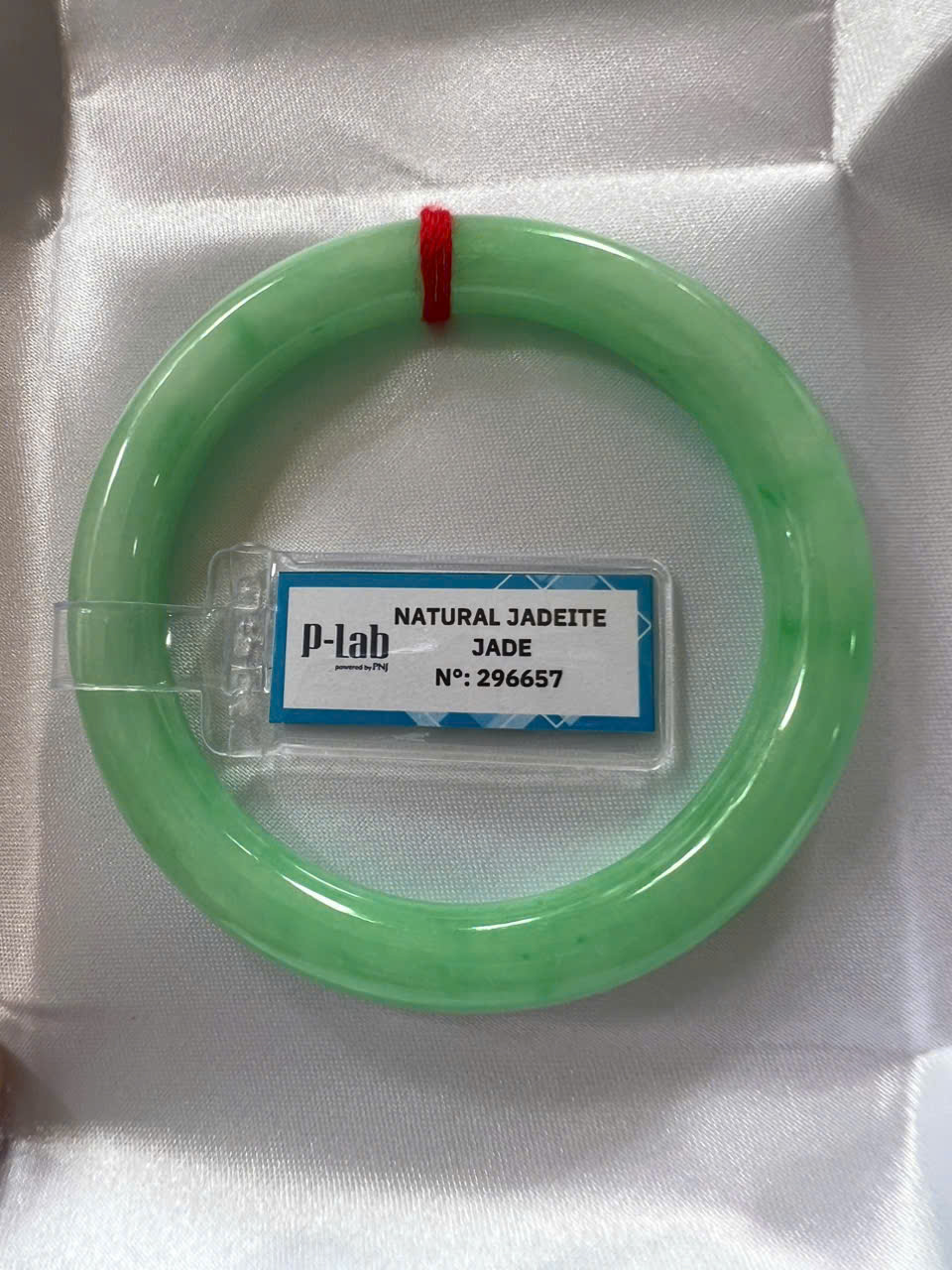 Đặc điểm nổi bật:Vòng cẩm thạch tự nhiên được kiểm định P Lab No 296657. Thiết kế đẹp, sang trọng, phù hợp cho nữ từ 50kg đến 56kg ạ