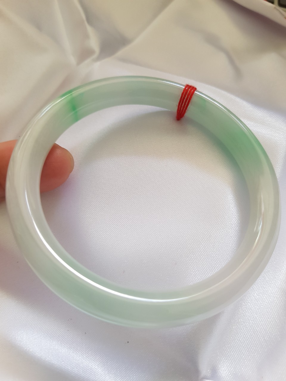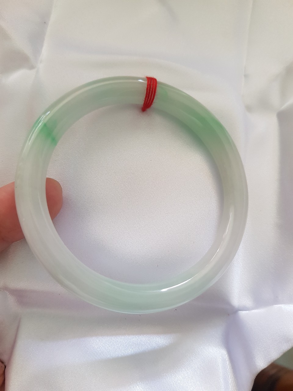 Vòng cẩm thạch tự nhiên mới Tr Lý Sao 58mm x cọng 8mm màu trắng bóng mượt xanh lý nhẹ rất xinh hợp với các Chị Em thân yêu.