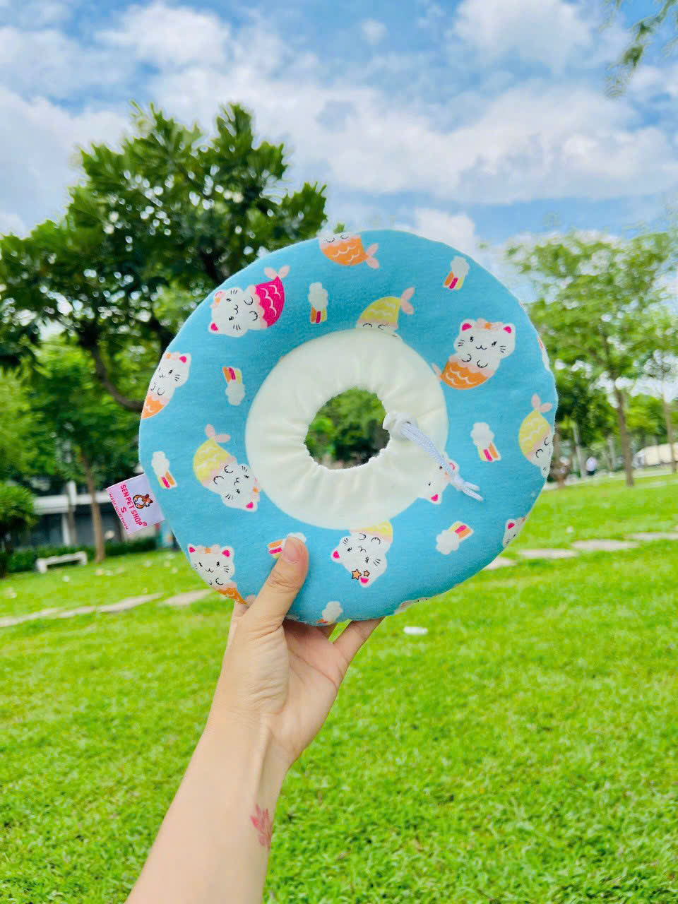 Chất liệu : Vải cotton hoạ tiết siêu cưng, ruột cấu tạo từ gòn bi êm ái cho cổ của các bé. Chu vi vòng cổ có thể điều chỉnh được