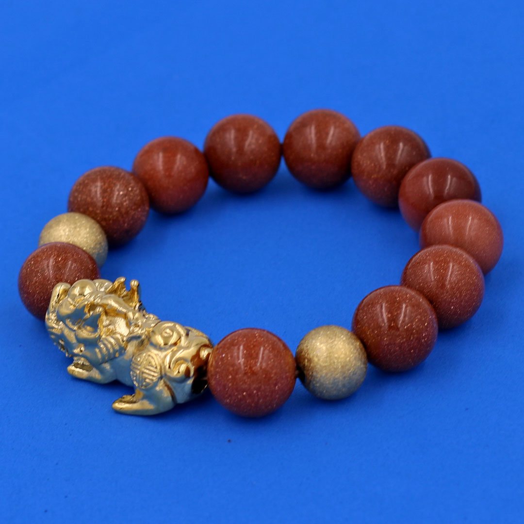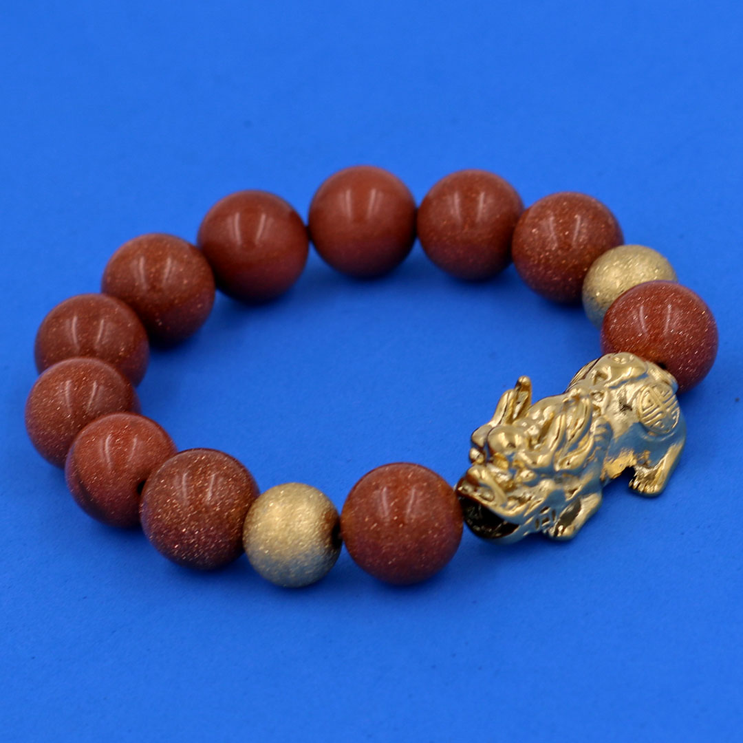 Thông tin sản phẩm : Vòng chuỗi đeo tay đá kim sa 14 ly ( size lớn ) charm tỳ hưu và bi inox vàng, vòng tay chuỗi hạt