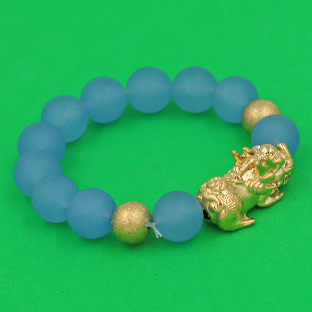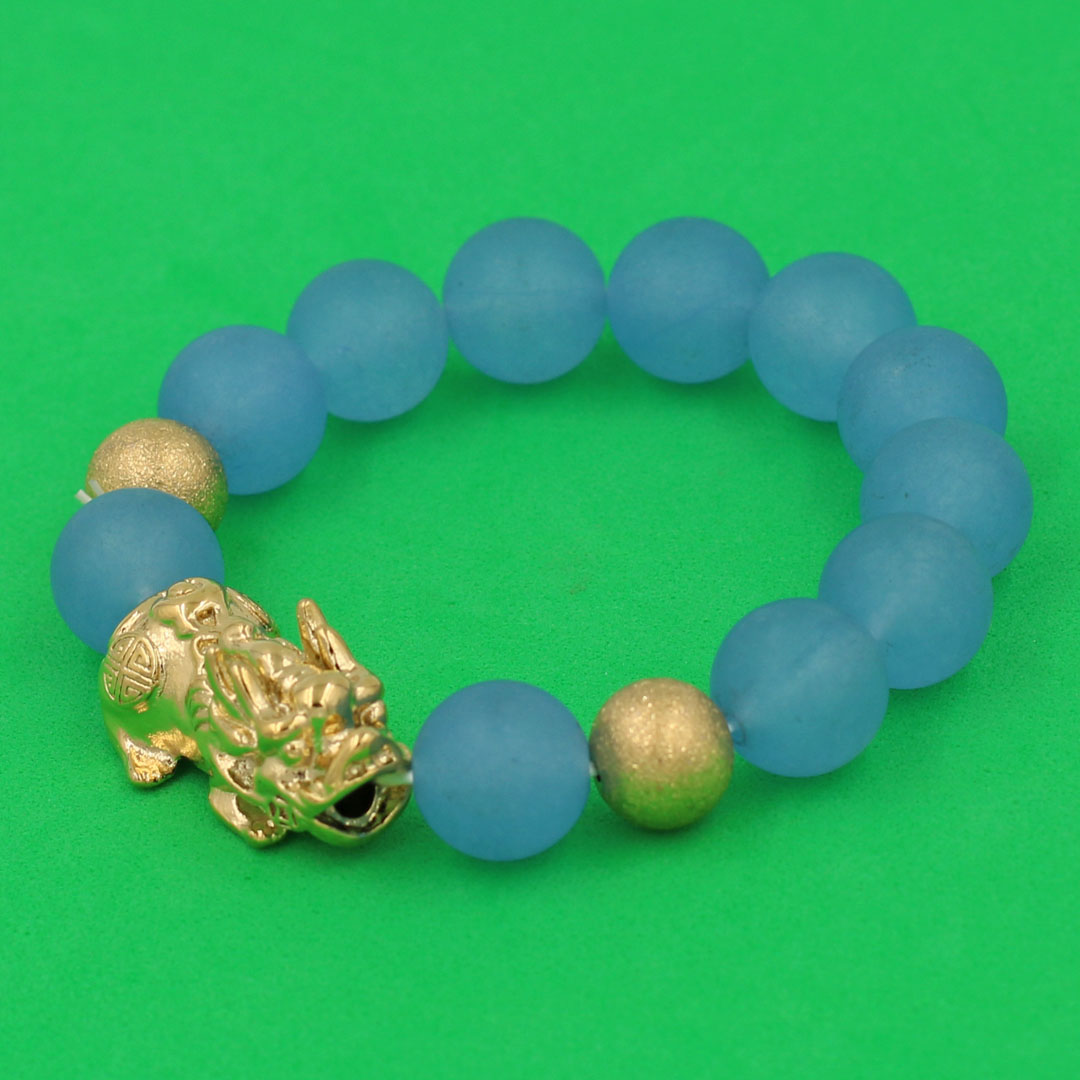 Thông tin sản phẩm : Vòng chuỗi đeo tay đá thạch anh xanh biển mờ 14 ly ( size lớn ) charm tỳ hưu và bi inox vàng, vòng tay chuỗi hạt