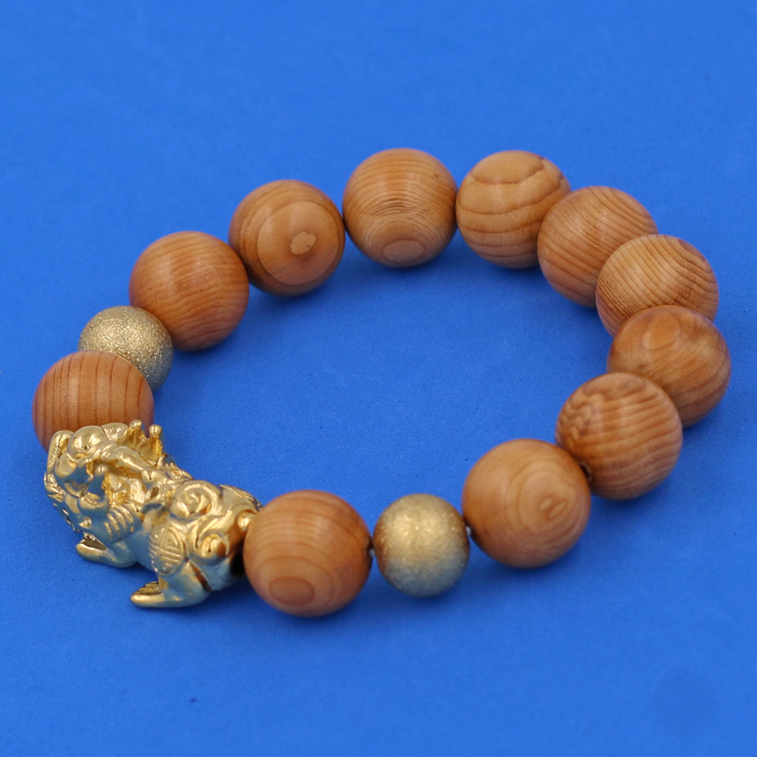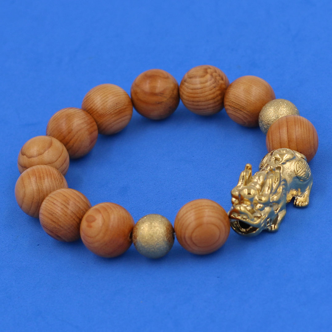 Thông tin sản phẩm : Vòng chuỗi đeo tay gỗ thủy tùng 15 ly ( size lớn ) charm tỳ hưu và bi inox vàng, vòng tay chuỗi hạt