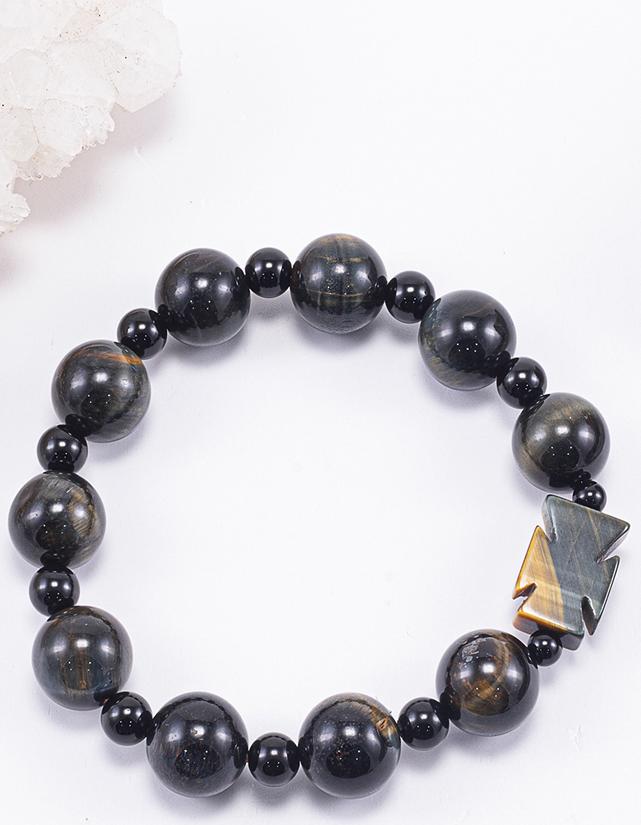 Vòng tay mắt hổ xanh đen phối thánh giá - Hợp mệnh thủy, mệnh mộc | Ngọc Quý Gemstones |