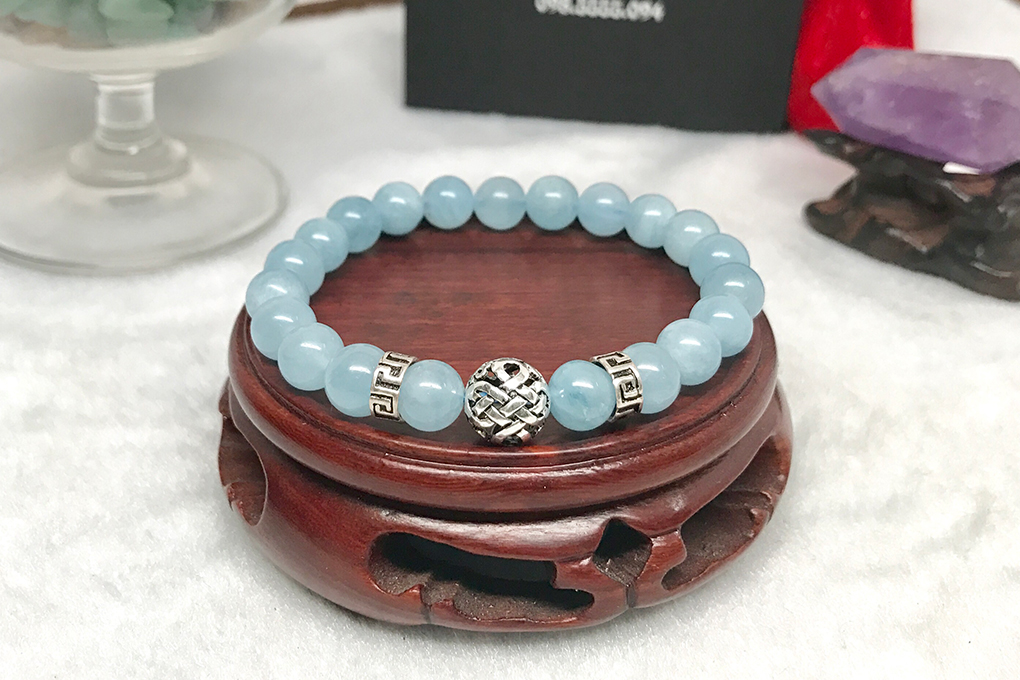 Vòng Đá Aquamarine Mix Charm Bạc Ngọc Quý Gemstones VPT042 đem lại bình an và may mắn, có tác dụng kiềm chế cơn tức giận. Giúp giảm stress, tĩnh tâm giảm căng thẳng, cầu sức khỏe và trường thọ.