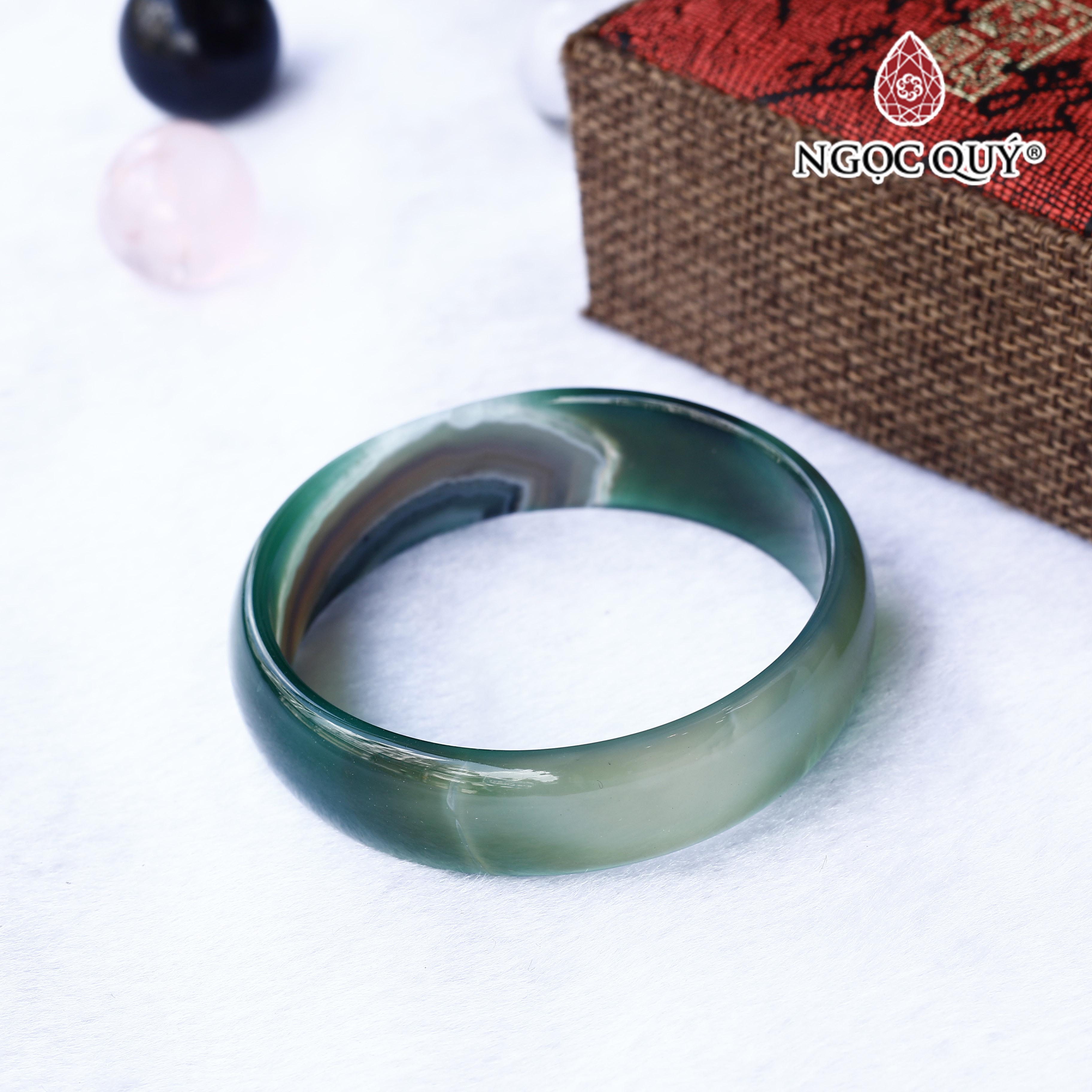 Vòng tay liền khối bản hẹ đá mã não xanh - Hợp Mệnh Mộc & Hỏa [ Ngọc Quý ]