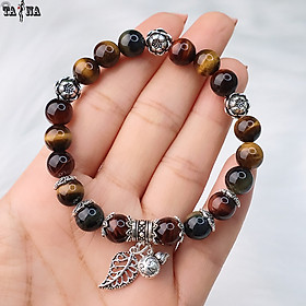 VÒNG TAY ĐÁ MẮT HỔ VÀNG NÂU CHARM LÁ: Đá Mắt Hổ có tên khoa học là Tiger Eye, là một loại tinh thể biến chất có màu sắc từ vàng, nâu đỏ đến xanh