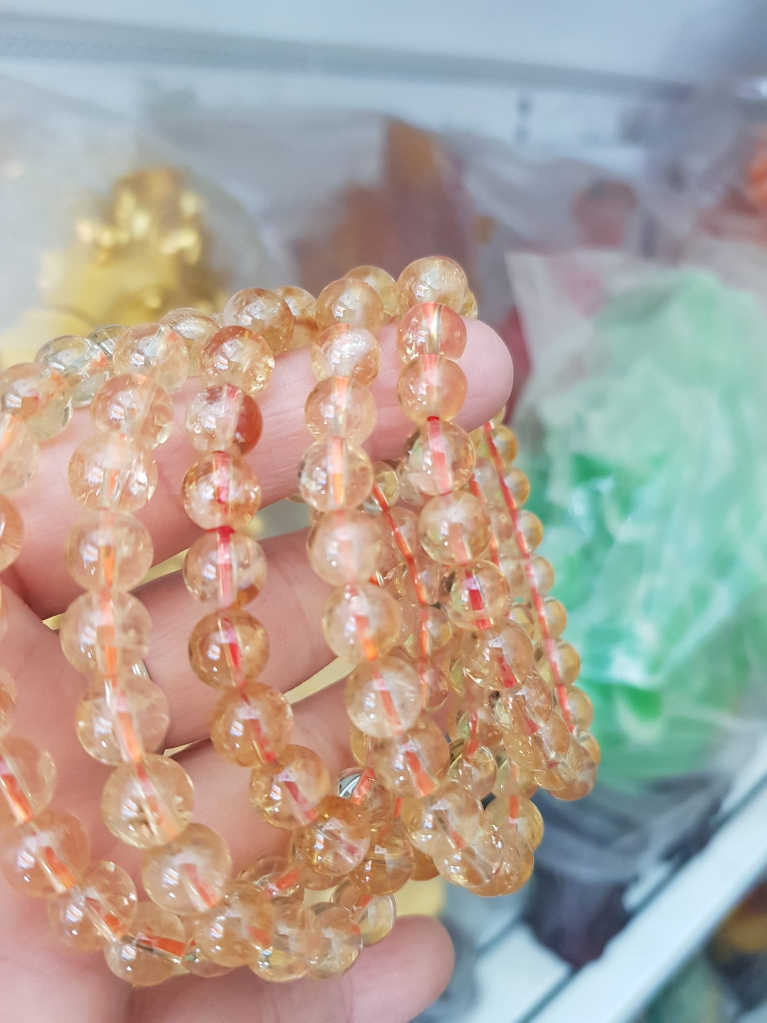 Chuỗi vòng thạch anh tóc vàng chất trong suốt siêu đẹp - Kích thước: 6.9 li - 34.6g- Gía bán: 2500k
