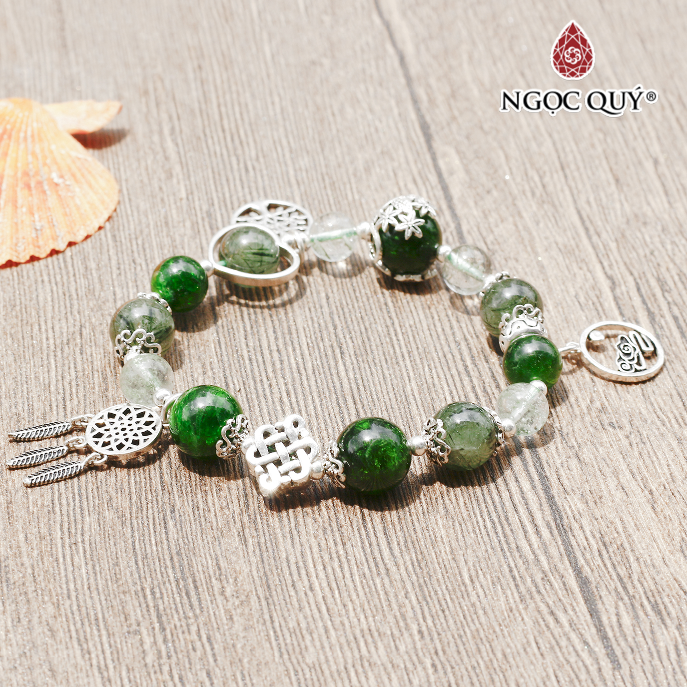 VÒNG TAY ĐÁ THẠCH ANH TÓC XANH PHỐI DREAM CATHCER BẠC: Được sự chúc phúc từ các tinh linh, Thạch Anh Tóc Xanh như mang ta quay về với những khu rừng thơ mộng, sự