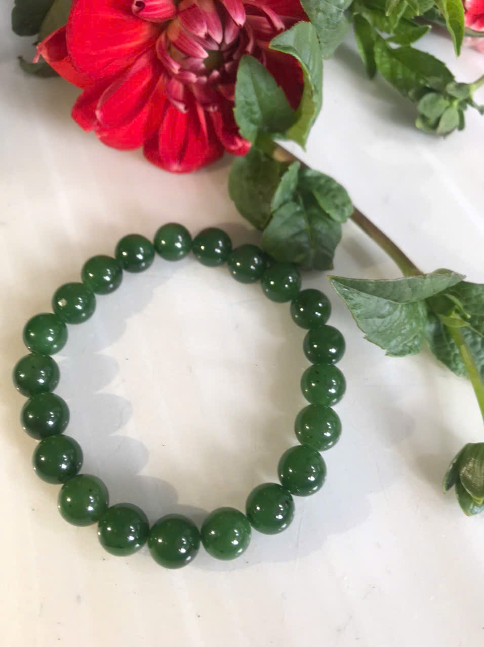 Vòng tay đá thiên nhiên phối hoa mẫu đơn Ngọc Quý Gemstone Đá cẩm thạch là một trong những dòng đá đặc biệt rất được ưa chuộng tại các khu vực Châu Á, đặc biệt