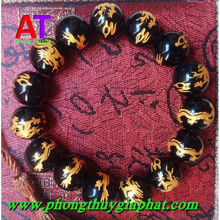 VÒNG ĐEO TAY ĐÁ ĐEN HUYỀN THẠCH CHẠM RỒNG