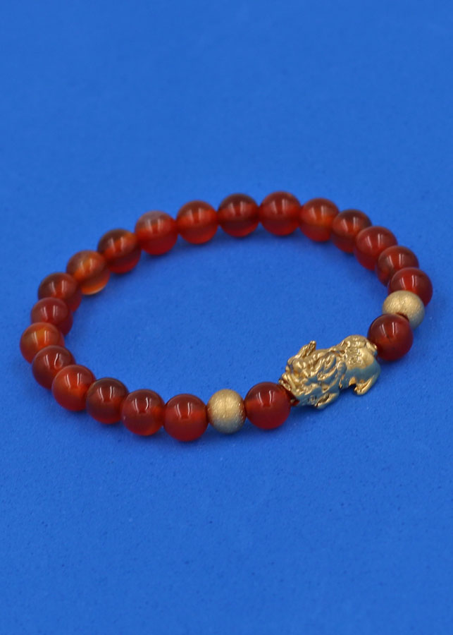 ✨Vòng đeo tay đá Mã Não đỏ 6 ly cẩn Tỳ Hưu inox vàng VMNOTHHBV6 - hợp mệnh Hỏa, mệnh Thổ