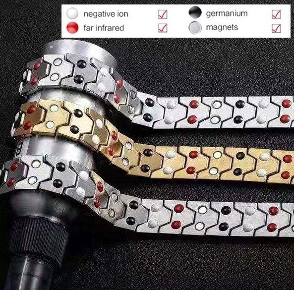Chính vì đặc tính đặc biệt này nên người ta áp dụng vào chế tạo các vòng tay, vòng cổ trang sức được gắn germanium, ưu điểm của loại nguyên tố này là khi để trong môi trường không khí thì không phát ra ion âm, nhưng khi được đeo và tiếp xúc với lớp da của người đeo với nhiệt độ 37 độ thì các ion âm từ hàng triệu nguyên tử germanium sẽ phát tán ra, đi qua lớp biểu bì và hấp thụ ion dương có hại trong cơ thể của người đeo.