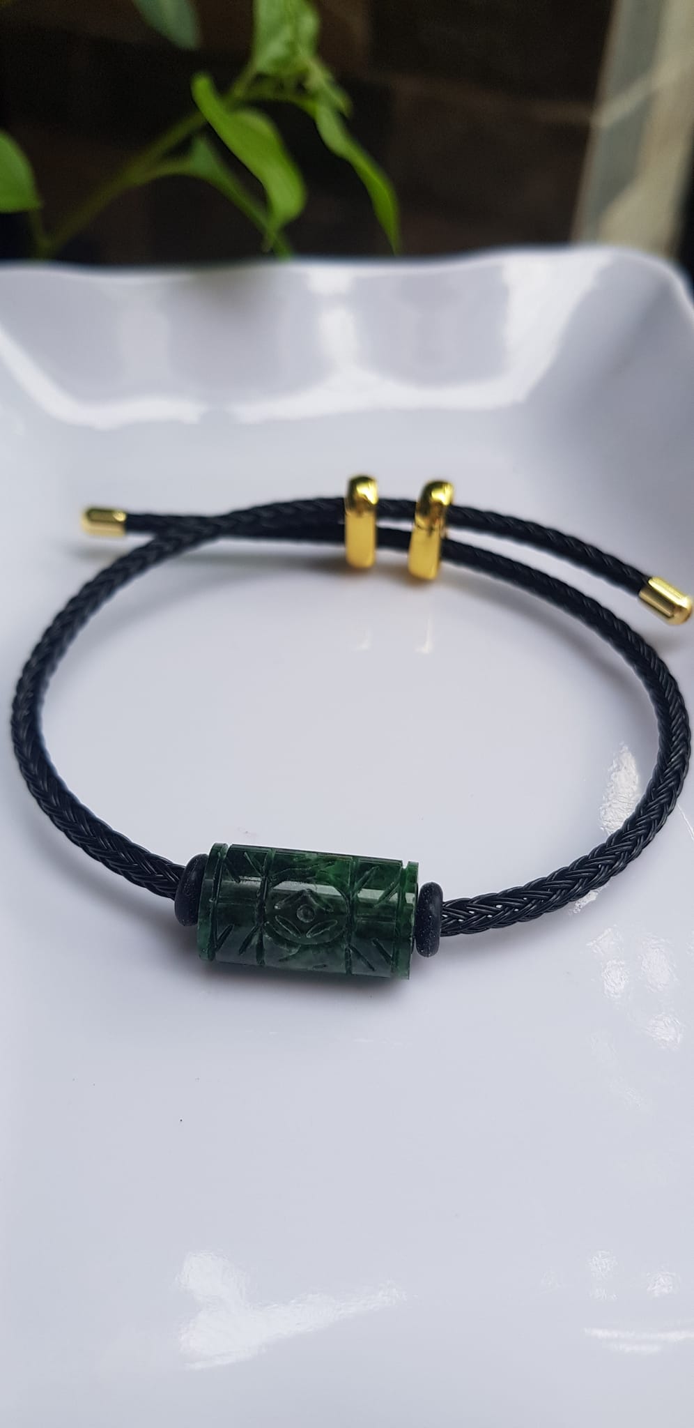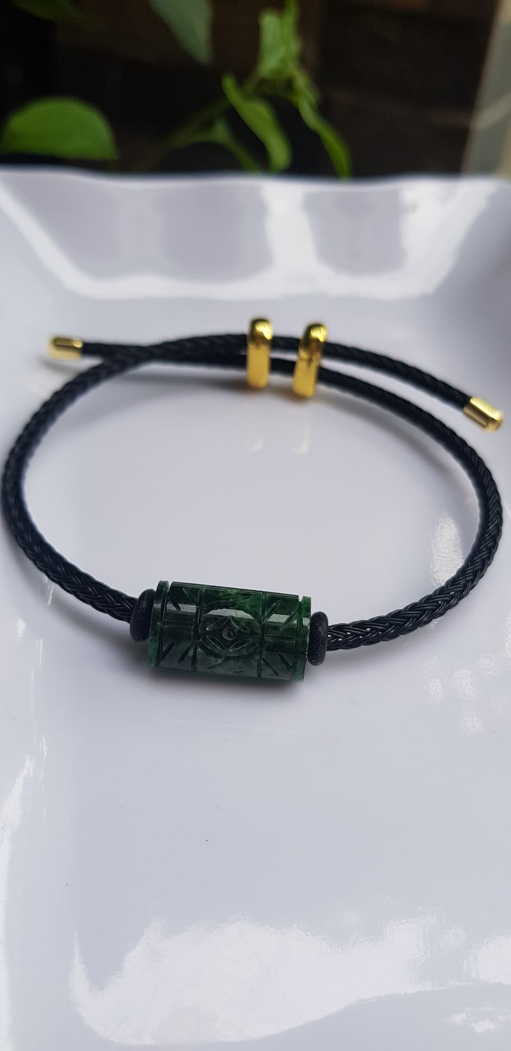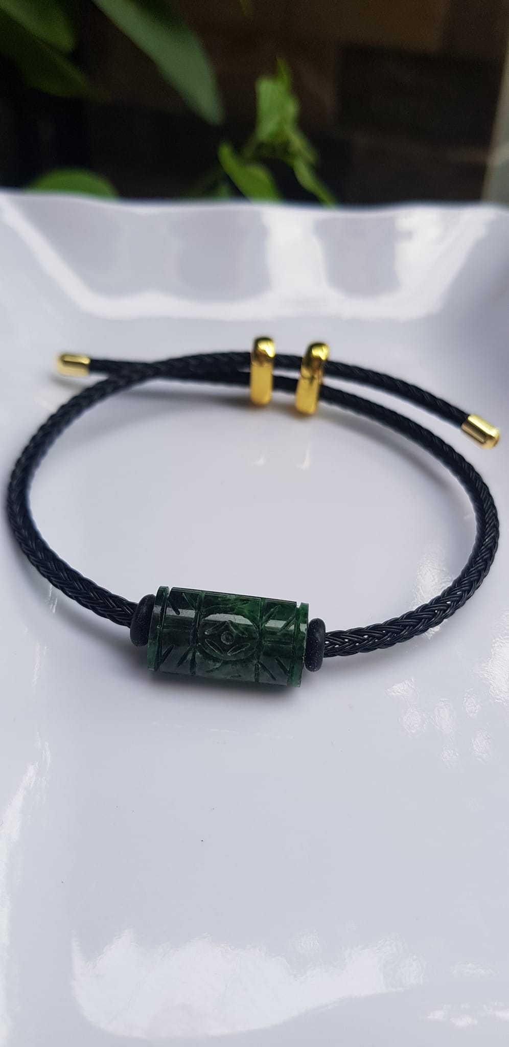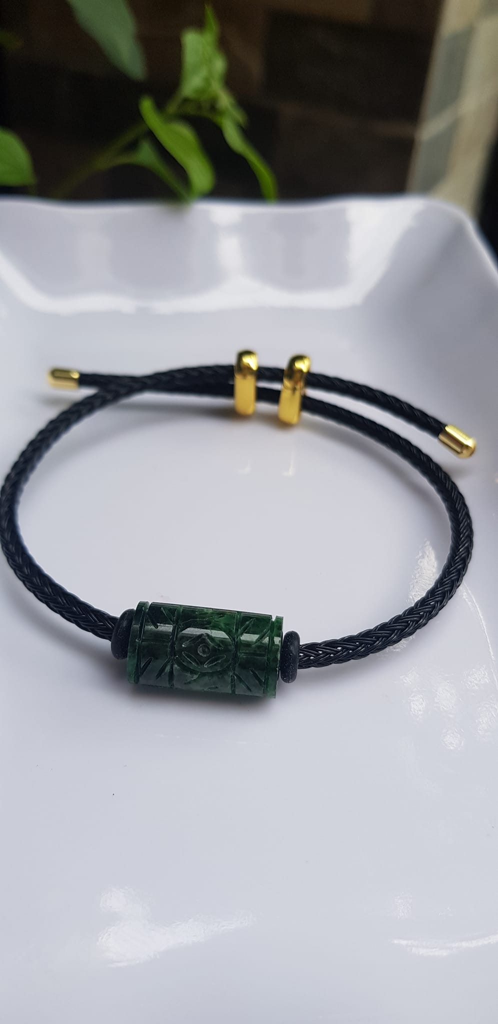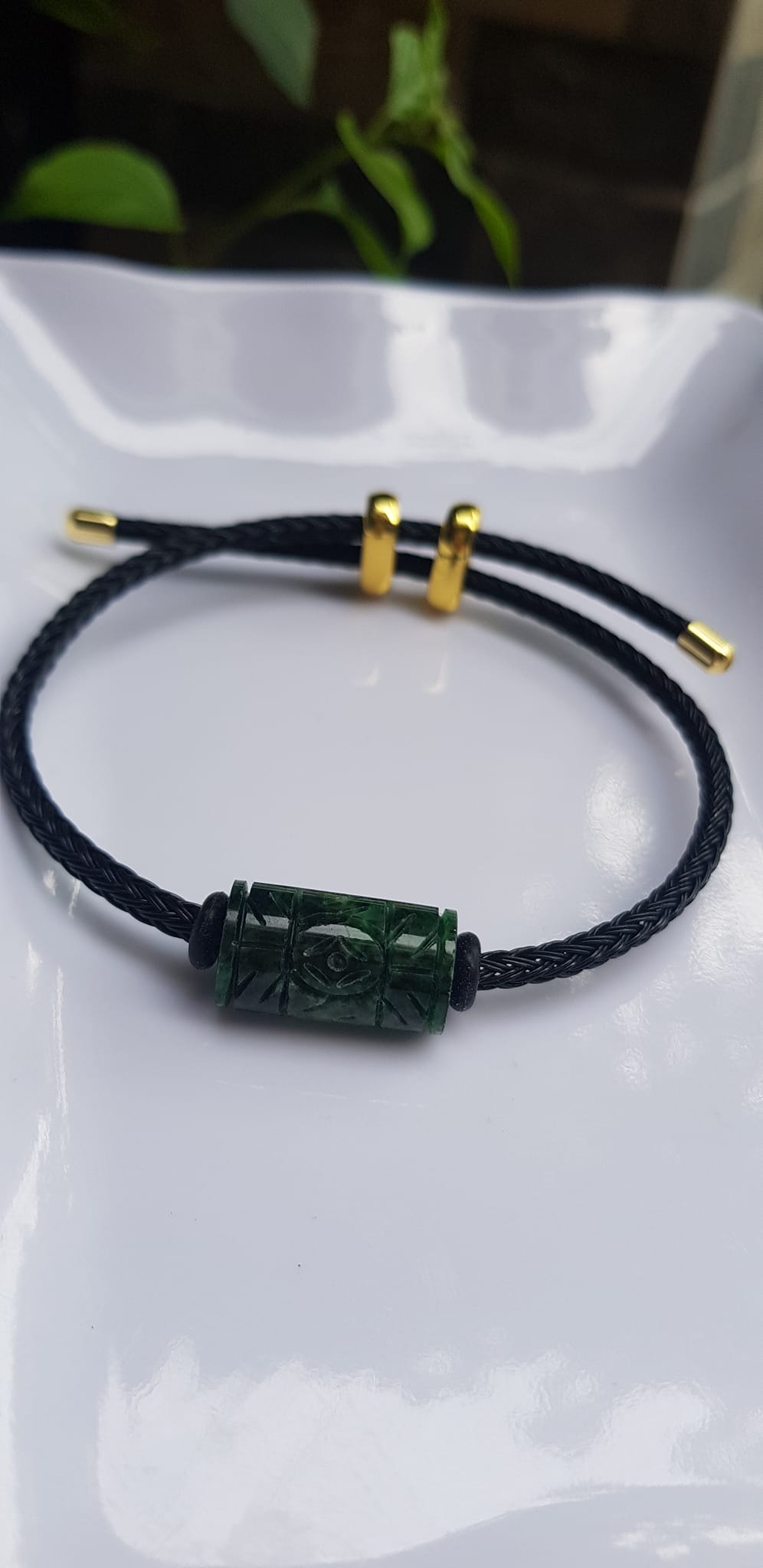 ✨Vòng Đeo tay Mới charm Lu Thống Đồng Tiền Xanh Đậm đẹp Hạt Lu Đồng Tiền Đá cẩm thạch tự nhiên dây đen rút chỉnh theo tay tùy ý Hợp nữ mệnh Thủy mệnh Mộc hợp ạ