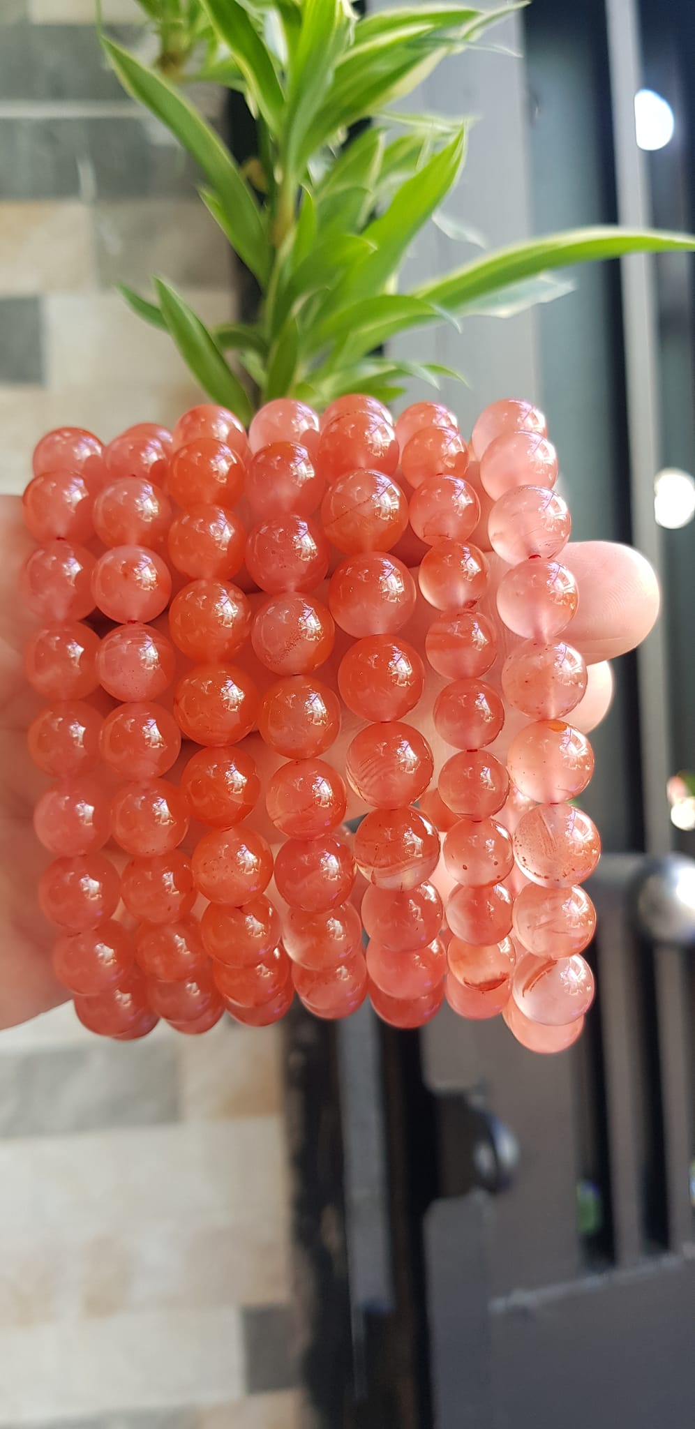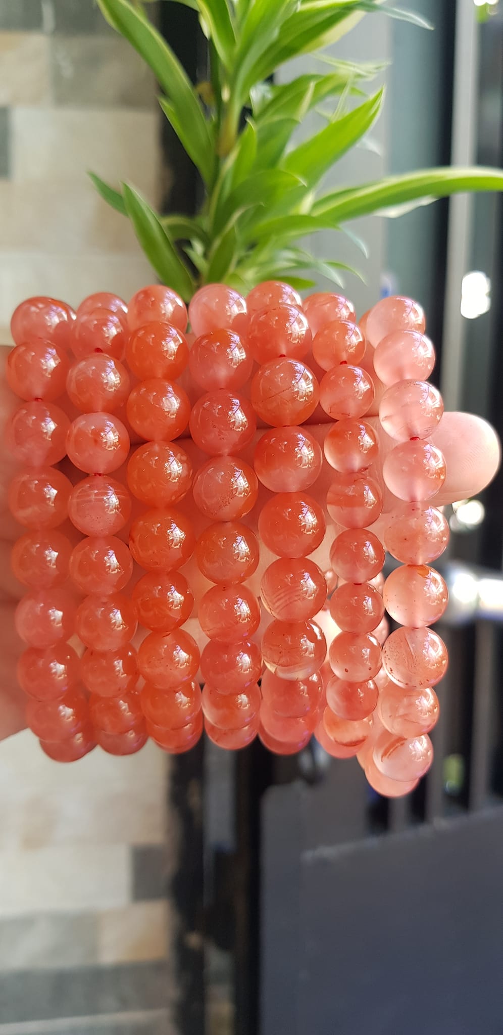 Vòng đeo tay nữ chuỗi mới đá mã não hồng cam bóng mượt đẹp Size vòng hạt 10mm Nam nữ mệnh hỏa mệnh thổ đeo ạ
