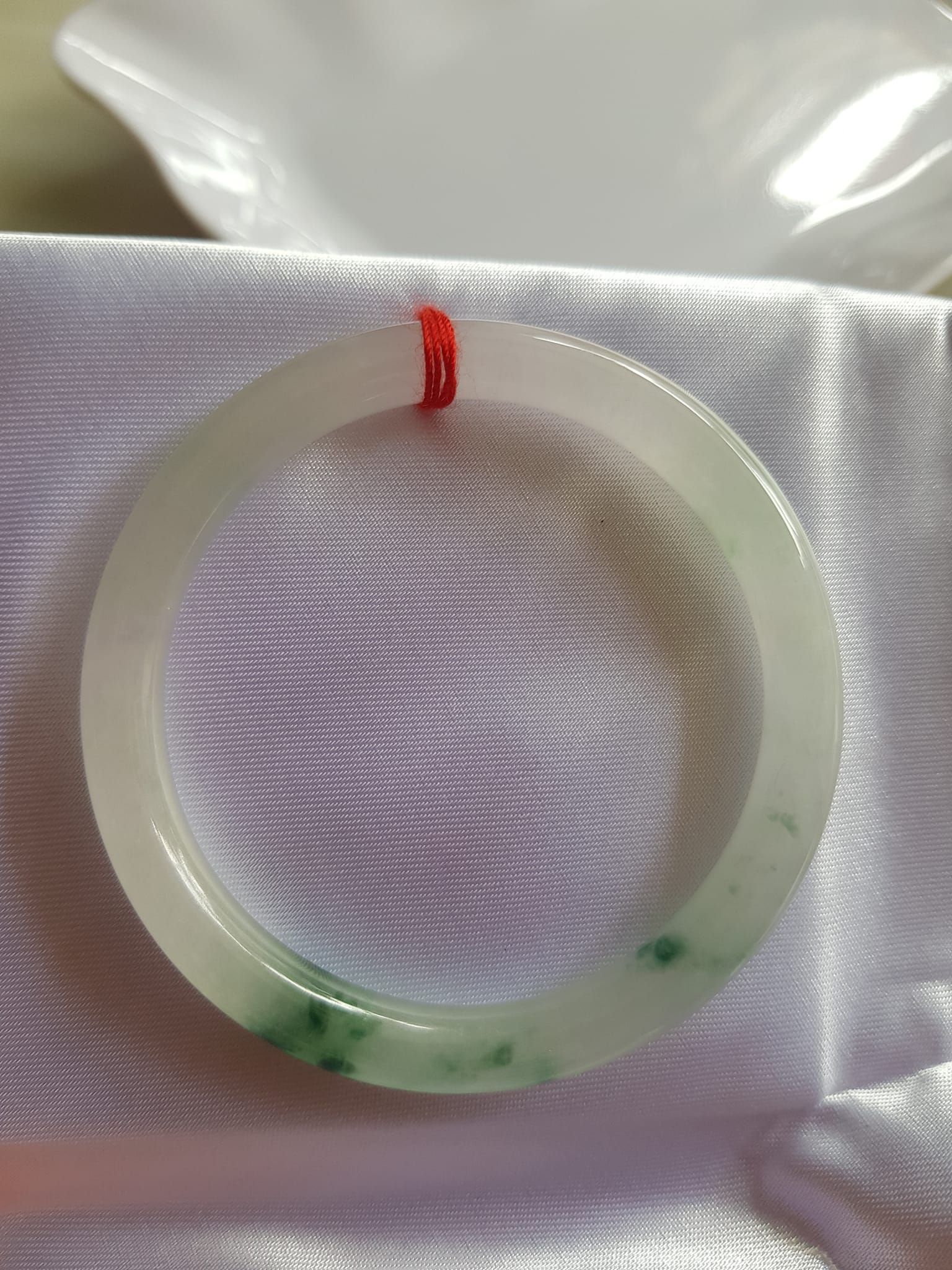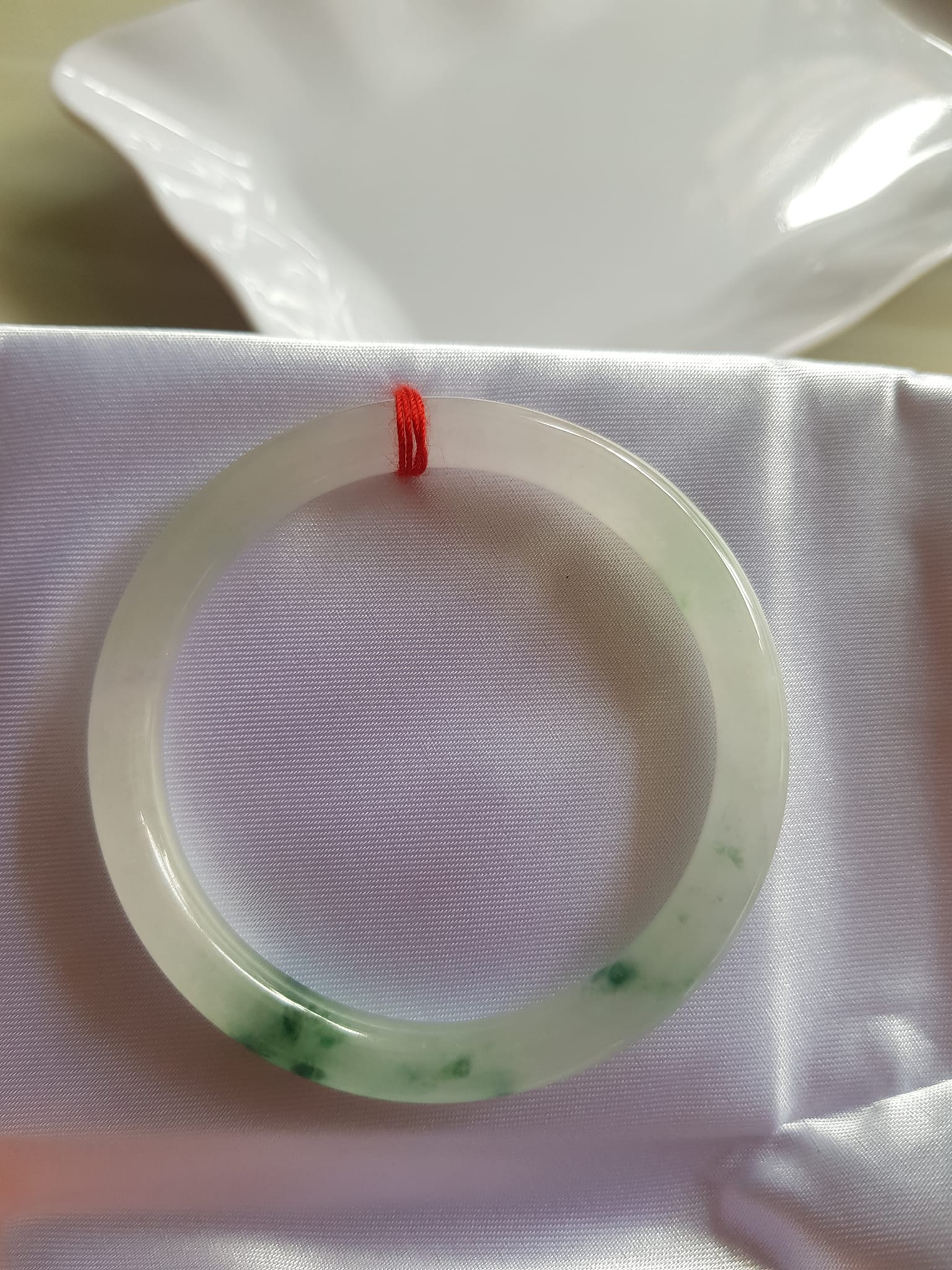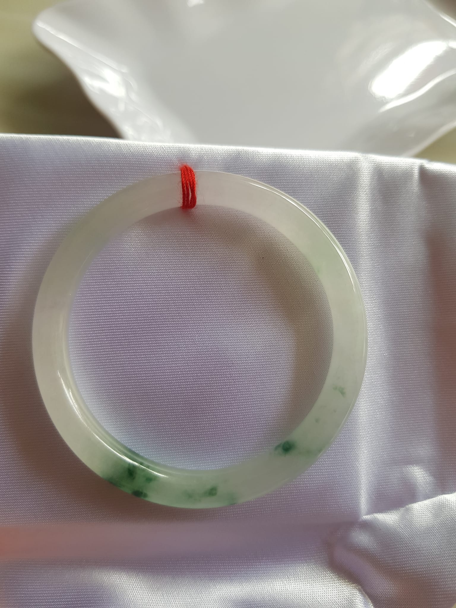 Vòng tay đá Cẩm Thạch mới TR Lý 51mm x cọng 6,2mm Màu Xanh lý 2 bên trắng đều đẹp nữ 50kg - 53kg đeo