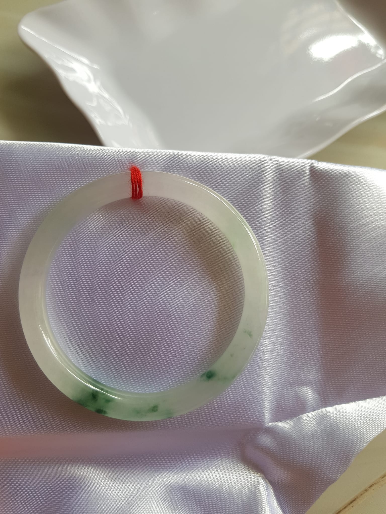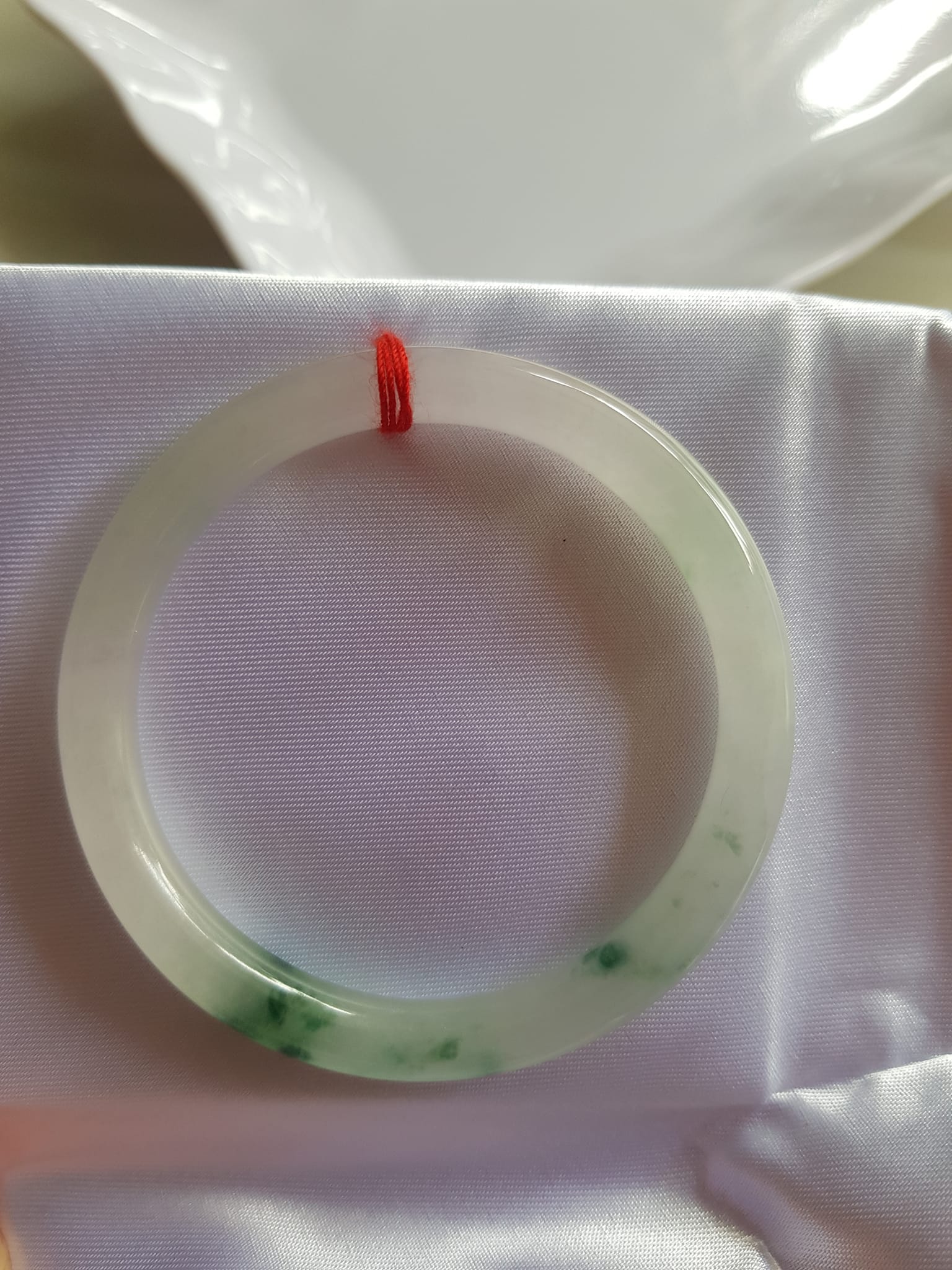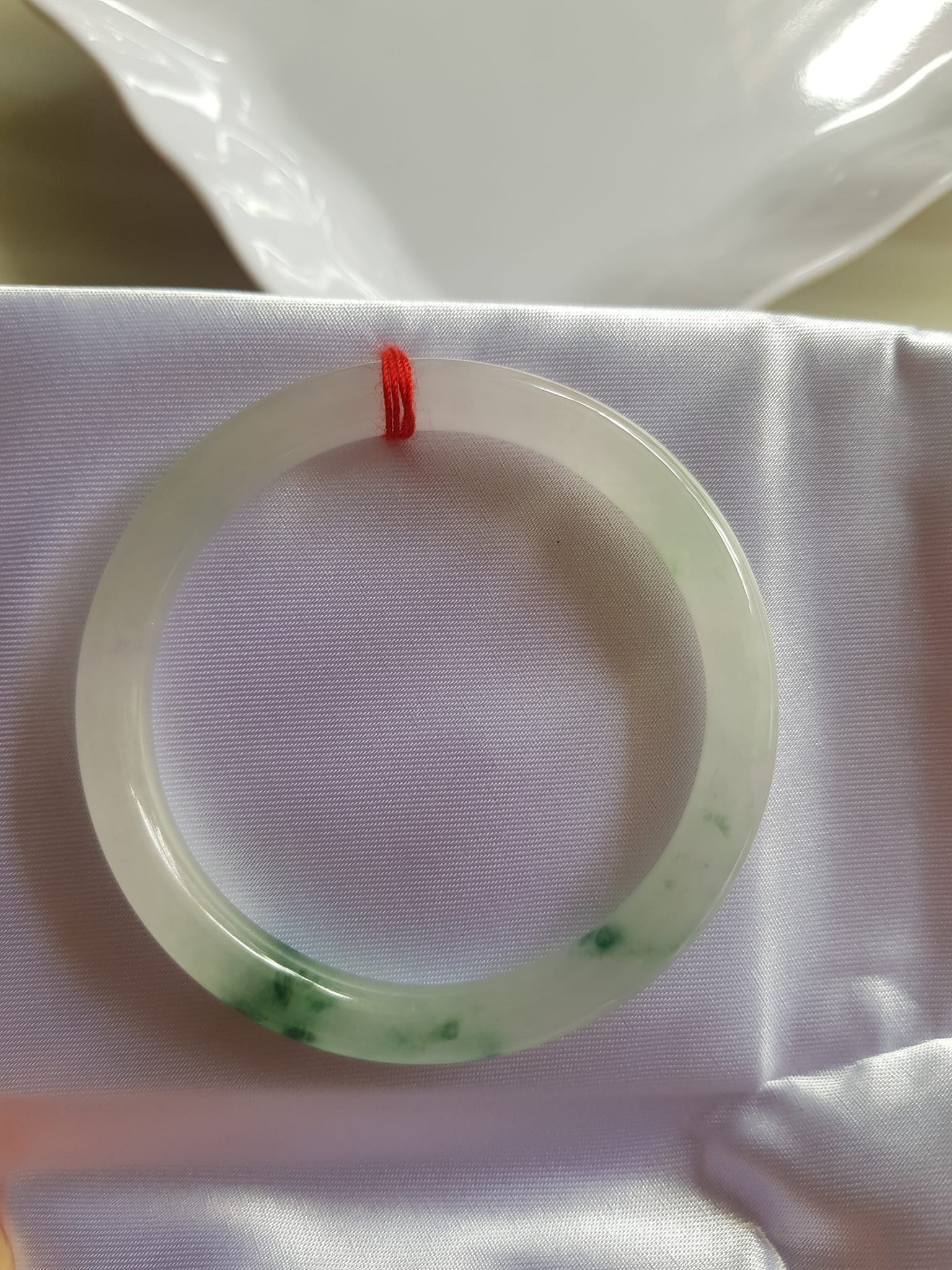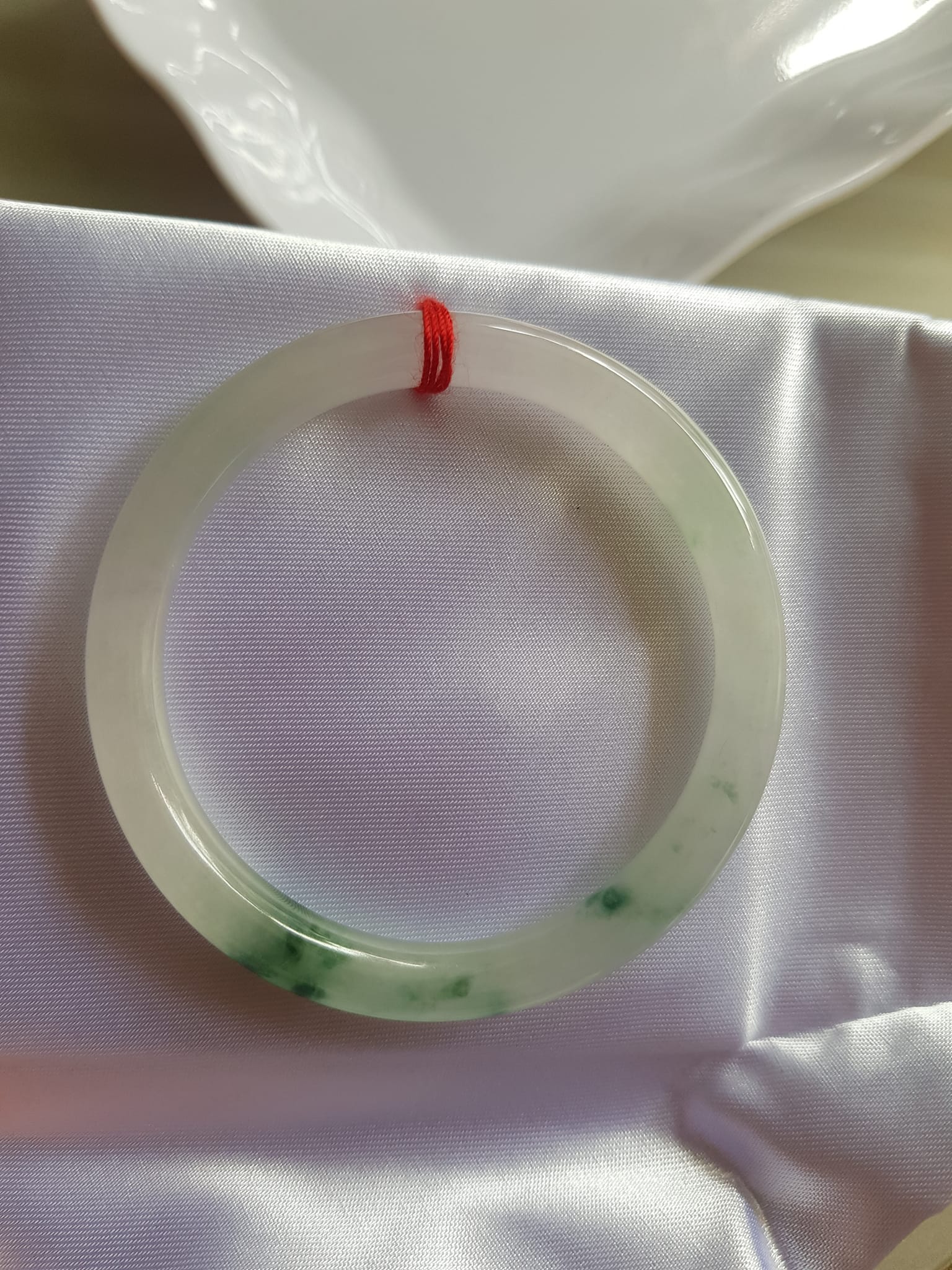 Vòng tay đá Cẩm Thạch mới TR Lý 51mm x cọng 6,2mm Màu Xanh lý 2 bên trắng đều đẹp nữ 50kg - 53kg đeo
