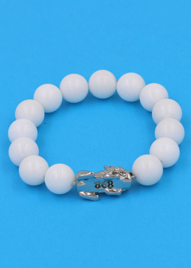 ✨Vòng đeo tay san hô trắng 12 ly - cẩn Tỳ Hưu inox VTATTHT12 - hợp mệnh Kim, mệnh Thủy
