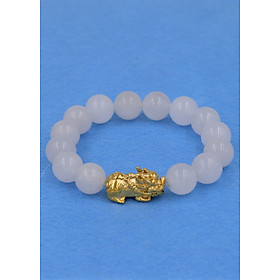 ✨Vòng đeo tay thạch anh trắng 12 ly - cẩn Tỳ Hưu inox vàng VTATTHV12 - hợp mệnh Kim, mệnh Thủy