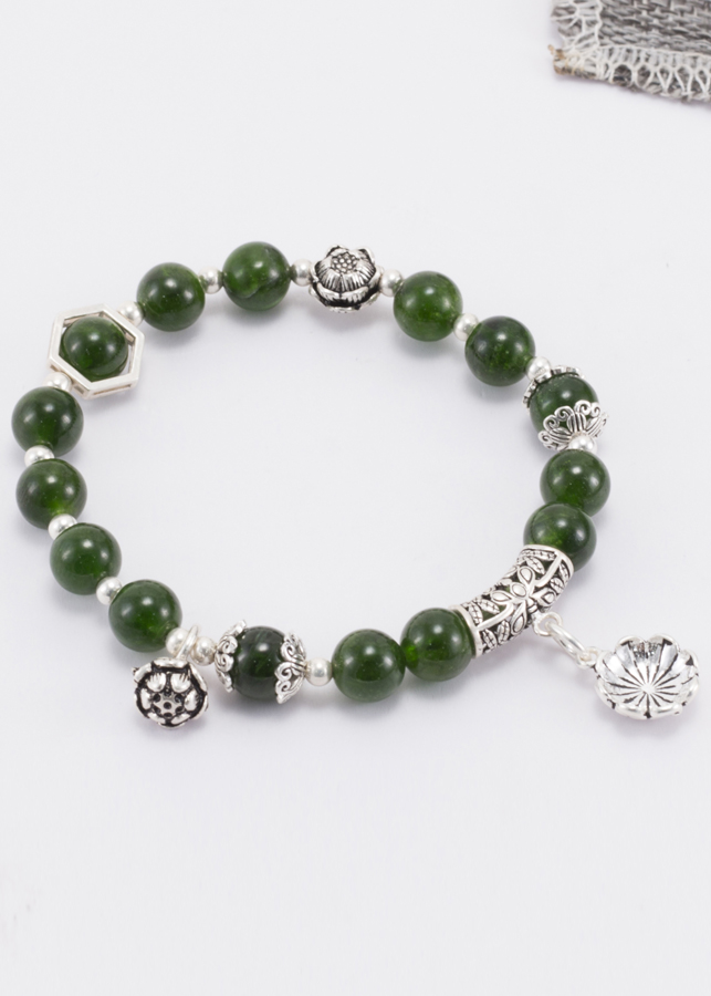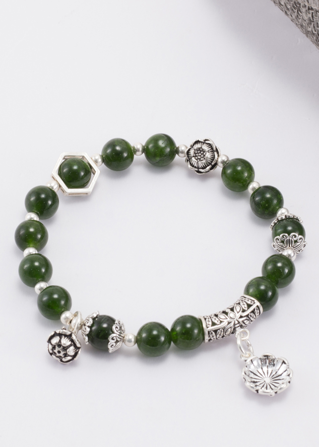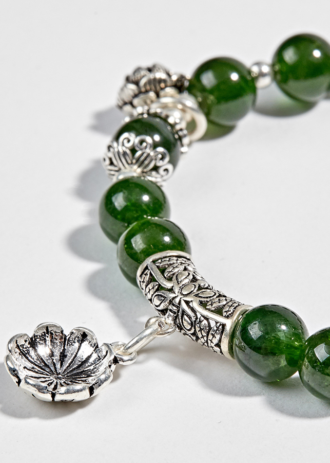 Vòng Diopside Aaa Phối Charm Bạc (8mm) Ngọc Quý Gemstones phù hợp với những người mệnh Hoả và mệnh Mộc, đem lại may mắn và cải thiện sức khoẻ cho những người thuộc mệnh này.