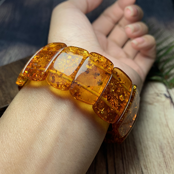 Chú ý : Không cọ rửa vòng Hổ Phách bằng xà phòng cũng như các chất tẩy rửa có phụ gia như Acid, kiềm và Ammoniac (tuy một số đồ trang sức có thể dùng các chất này). Nó có thể xỉn màu qua thời gian. Khi đó chỉ nên dùng bột đánh răng, nhúng vào một mảnh vải mềm ẩm để làm sạch, sau đó lau khô rồi dùng dầu oliu lau tiếp cho đến khi các hạt bóng trở lại.